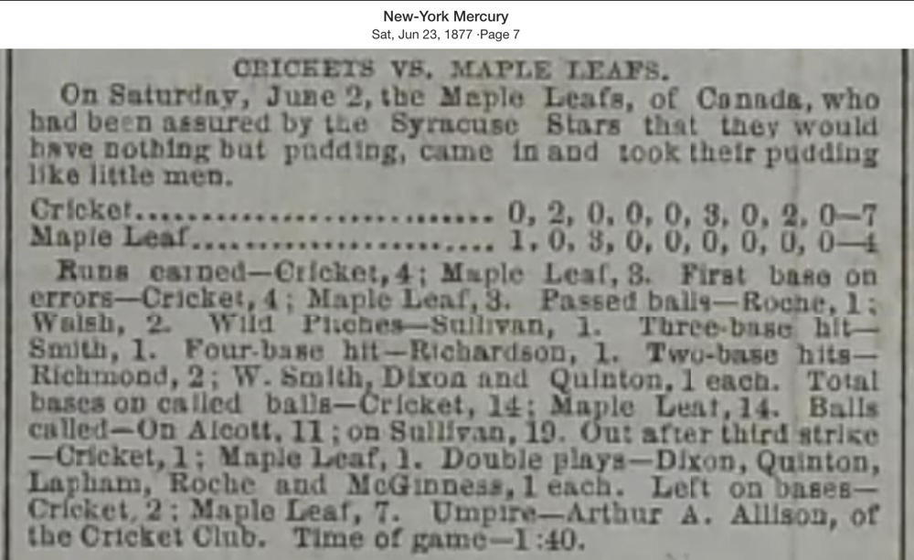 Crickets 7, Maple Leaf 4