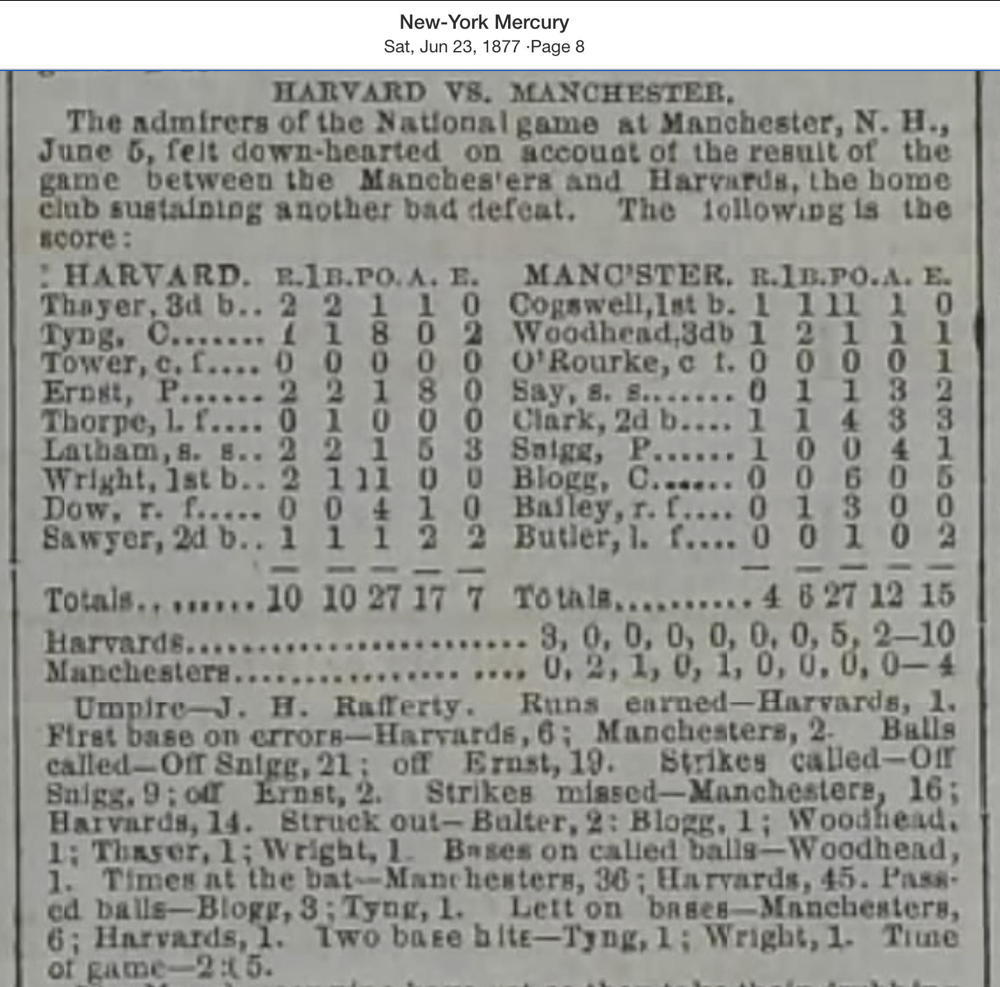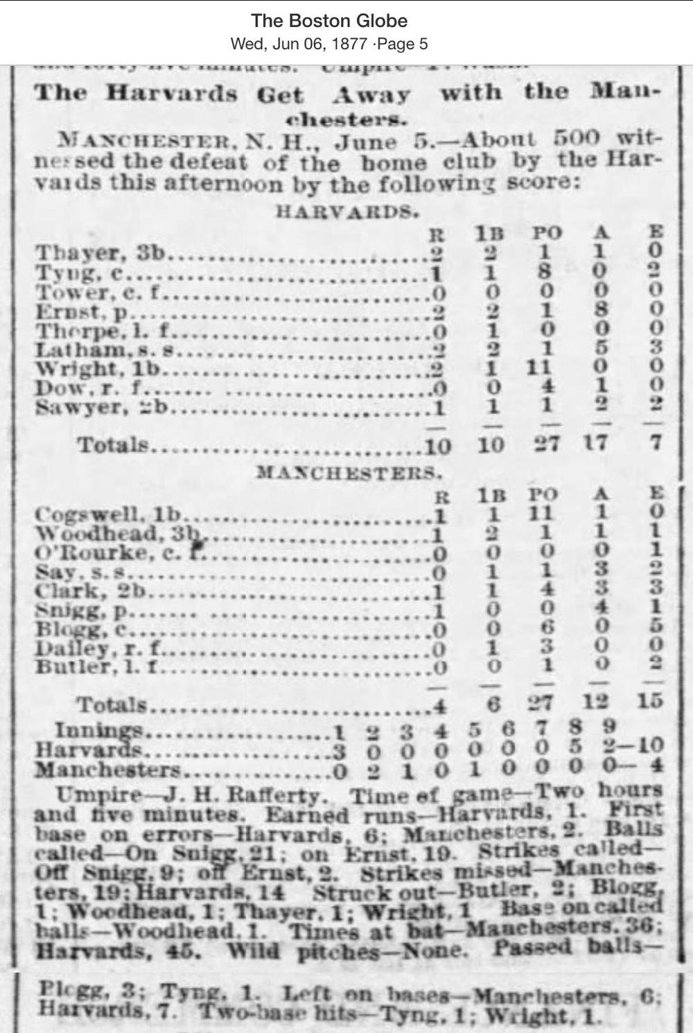 June 5, 1877 at ManchesterManchester 4, Harvard 10GameID g06051877-03