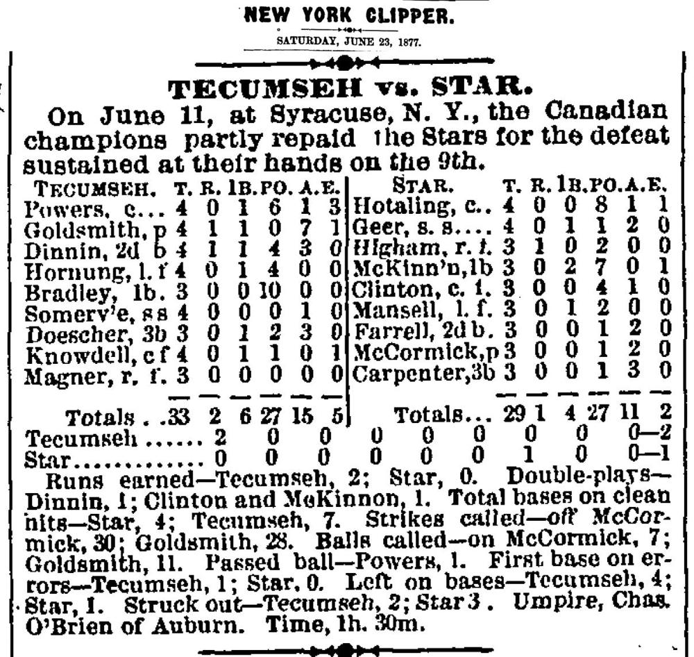 Syracuse Stars 1, Tecumseh 2
