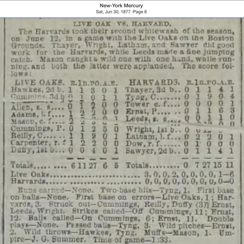 June 12, 1877 at BostonHarvard 0, Live Oak 6GameID g06121877-02