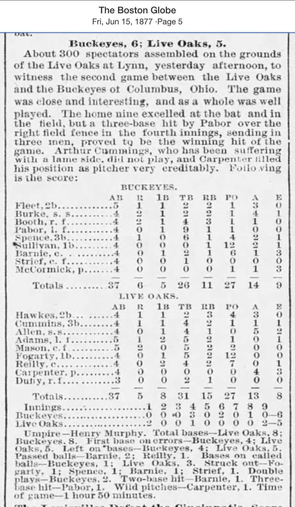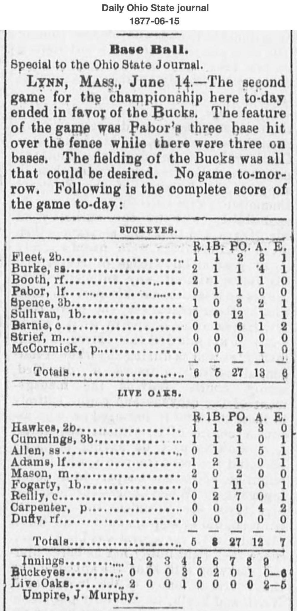June 14, 1877 at LynnLive Oak 5, Buckeyes 6GameID g06141877-02