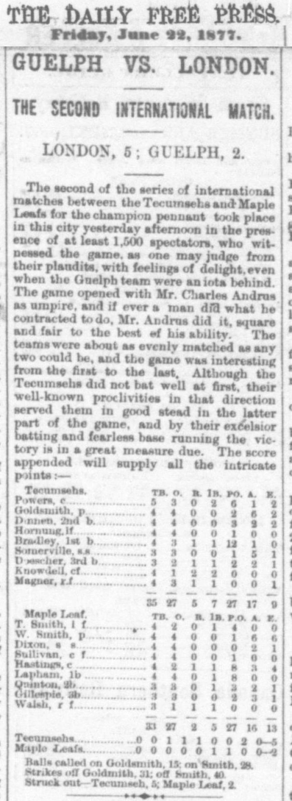 June 21, 1877 at LondonTecumseh 5, Maple Leaf 2GameID g06211877-03