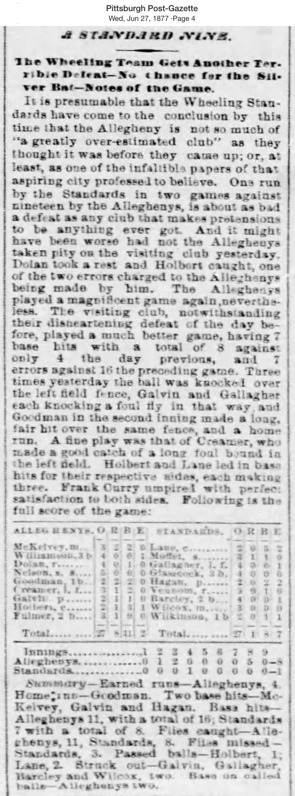 June 26, 1877 at AlleghenyAllegheny 8, Standard 1GameID g06261877-01