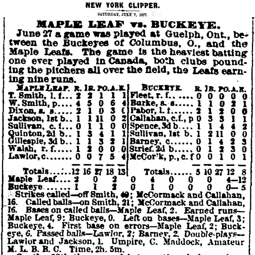 | lf | Tommy Smith | | p | William Smith | | ss | Richard Dixon | | 1b | W E Jackson | | cf | James Sullivan | | 2b | Marshall Quinton | | 3b | Henry Gillespie | | rf | Walsh | | c | Mike Lawlor | | | Buckeyes