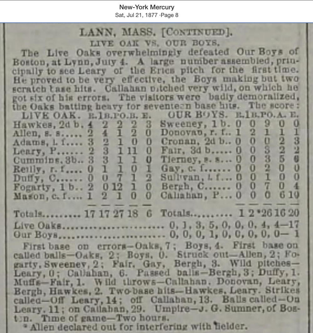 July 4, 1877 at LynnLive Oak 17, Our Boys 1GameID g07041877-06