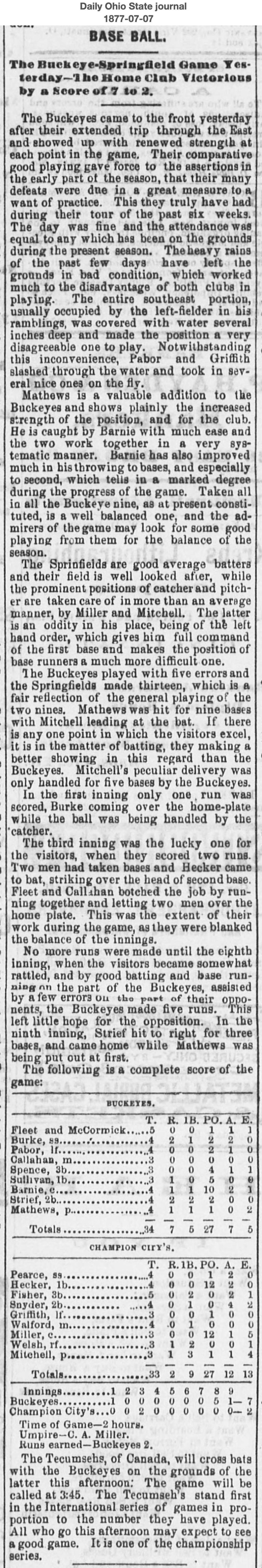 July 6, 1877 at ColumbusBuckeyes 7, Champion City 2GameID g07061877-01