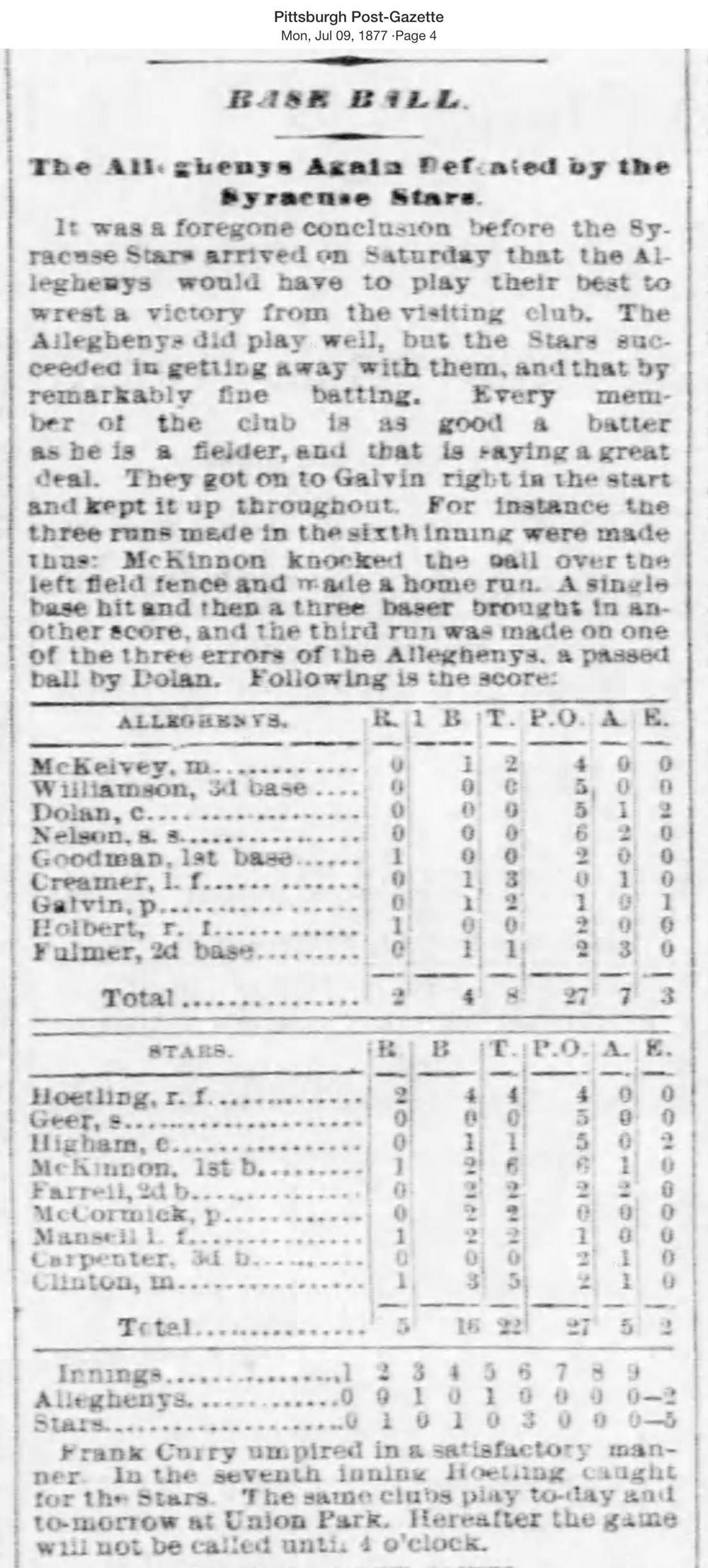 July 7, 1877 at AlleghenyAllegheny 2, Star 5GameID g07071877-01