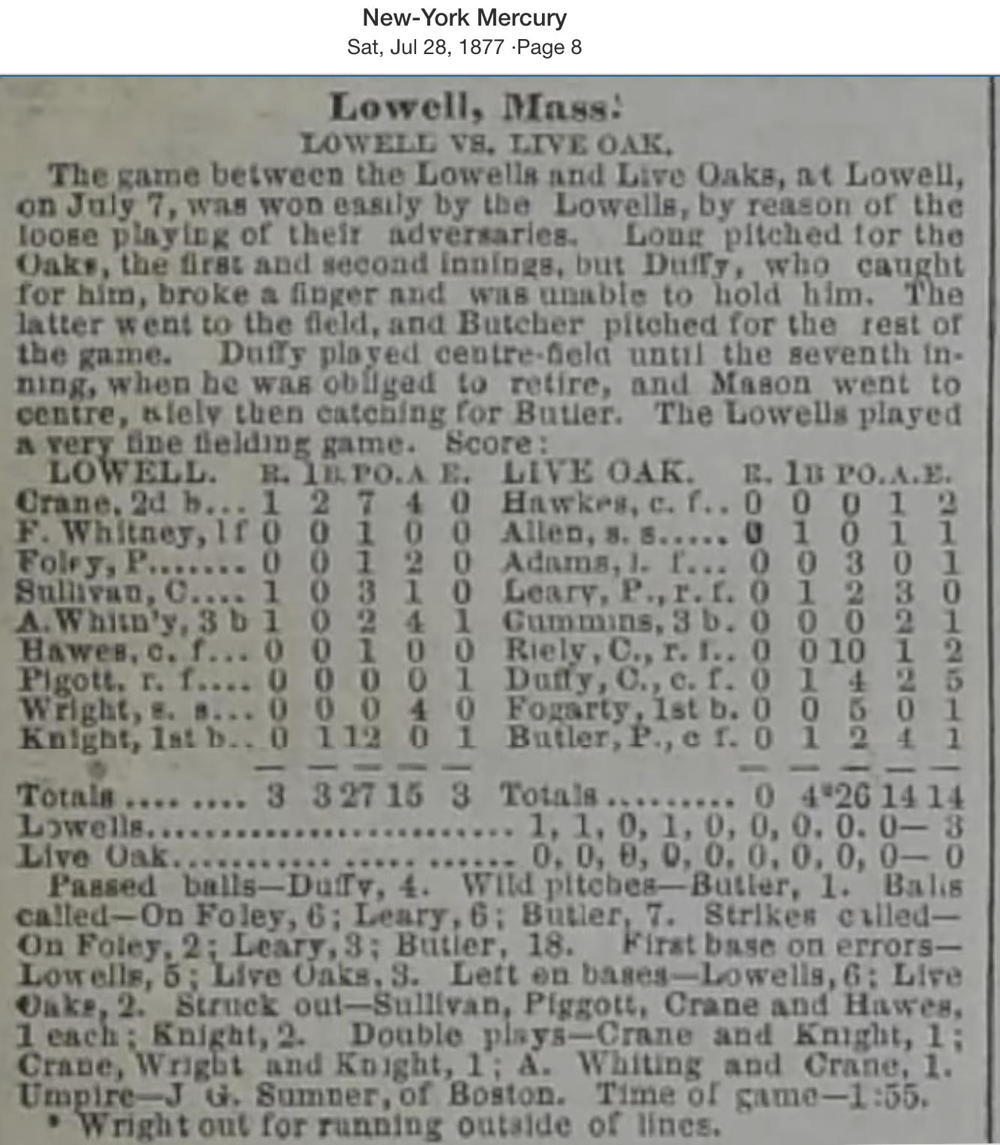 July 7, 1877 at LowellLowell 3, Live Oak 0GameID g07071877-04