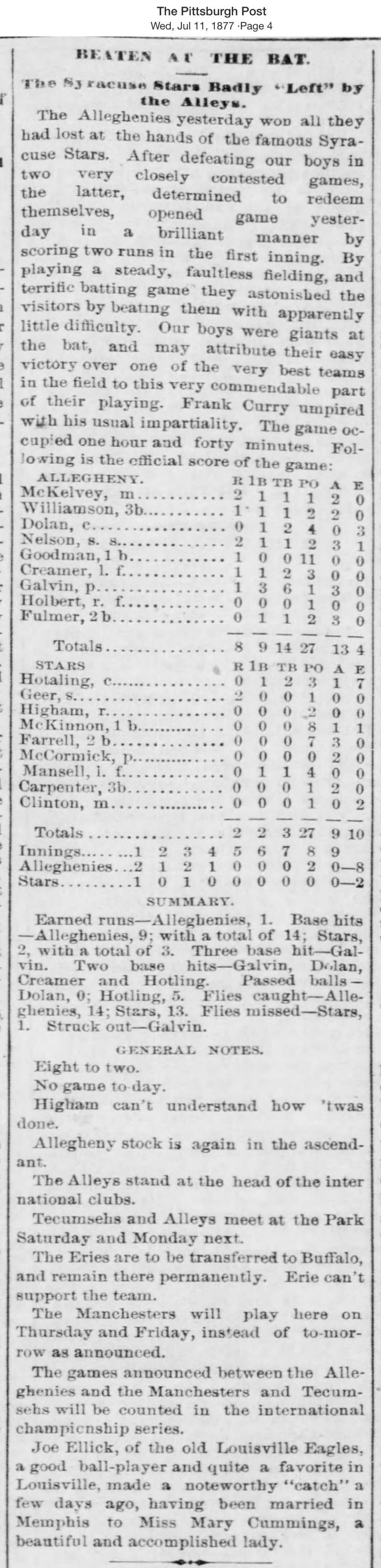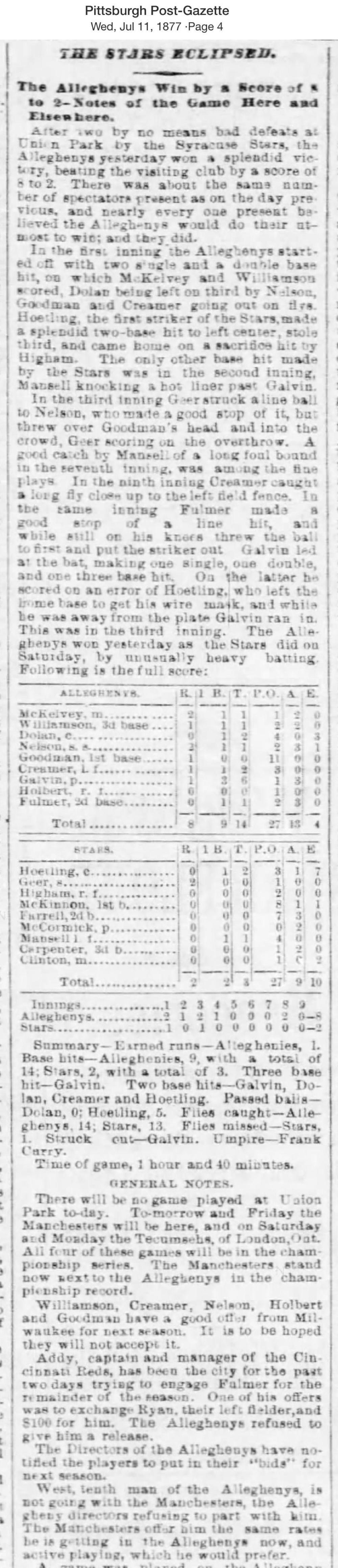 July 10, 1877 at AlleghenyAllegheny 8, Star 2GameID g07101877-01
