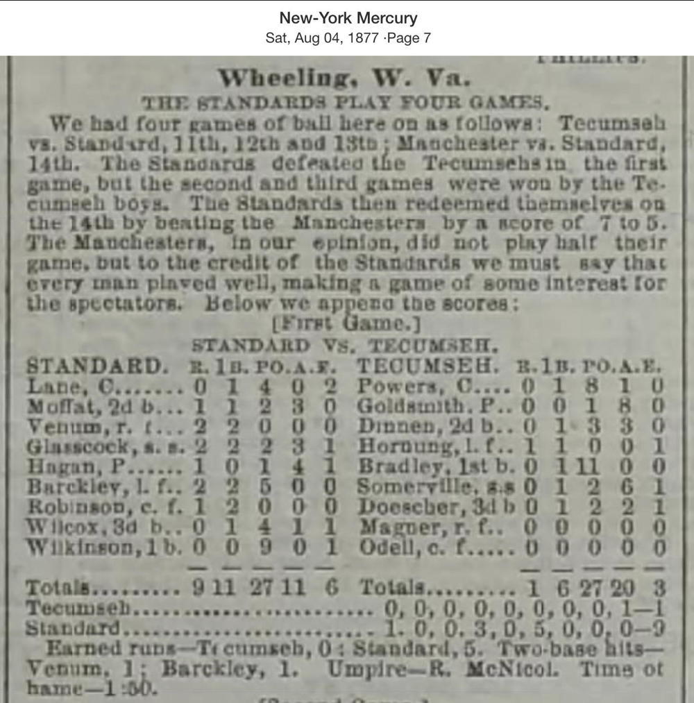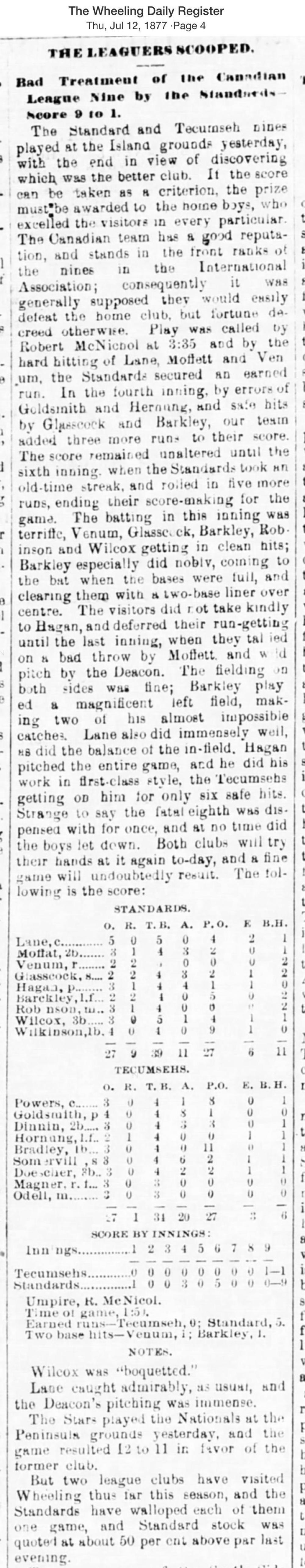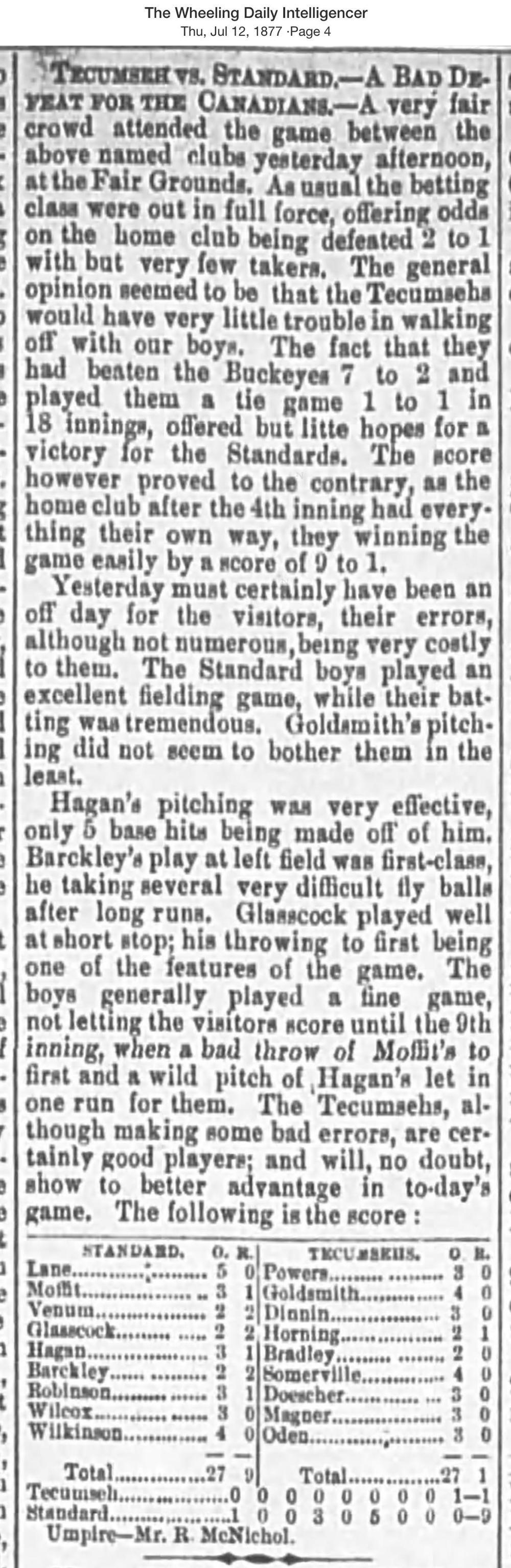 July 11, 1877 at WheelingStandard 9, Tecumseh 1GameID g07111877-05