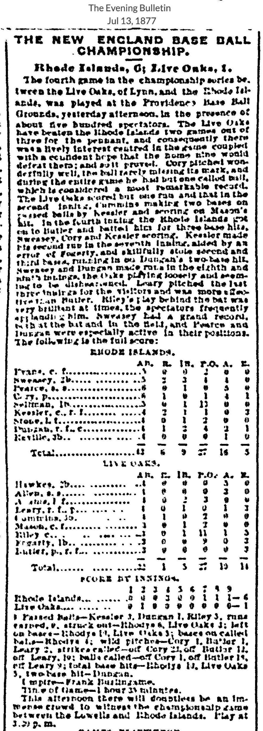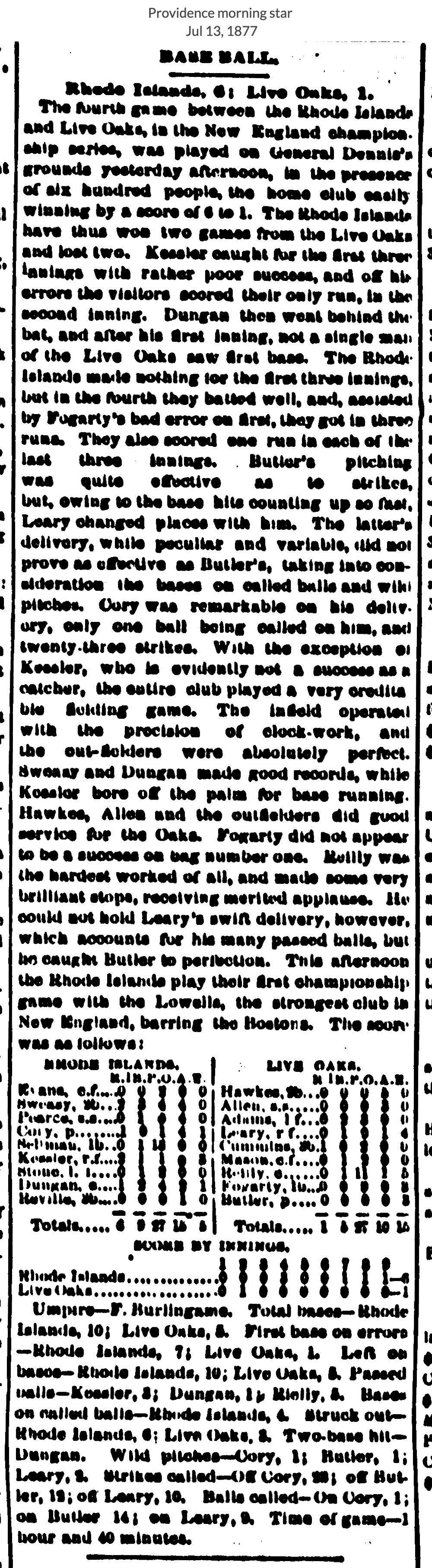 July 12, 1877 at Rhode IslandRhode Island 6, Live Oak 1GameID g07121877-03