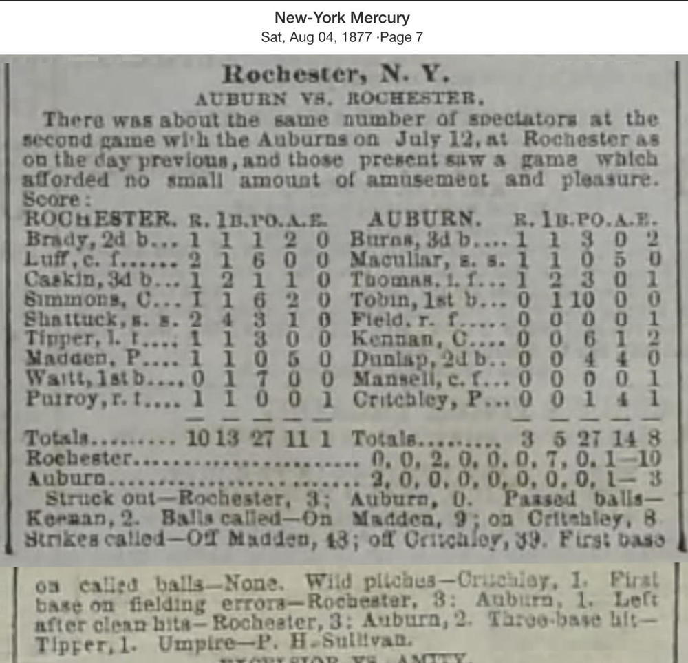 July 12, 1877 at RochesterRochester 10, Auburn 3GameID g07121877-04