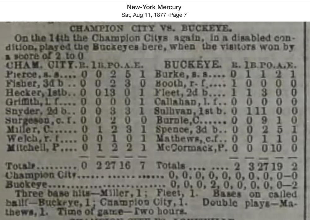 July 14, 1877 at SpringfieldChampion City 0, Buckeyes 2GameID g07141877-03