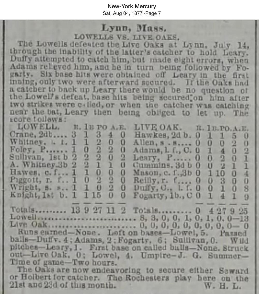 July 14, 1877 at LynnLive Oak 0, Lowell 13GameID g07141877-05