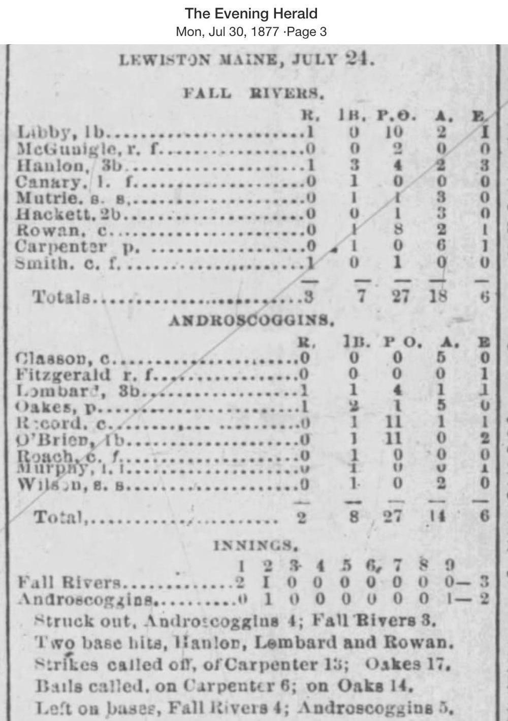 July 24, 1877 at Lewiston MEAndroscoggin 2, Fall River 3GameID g07241877-01