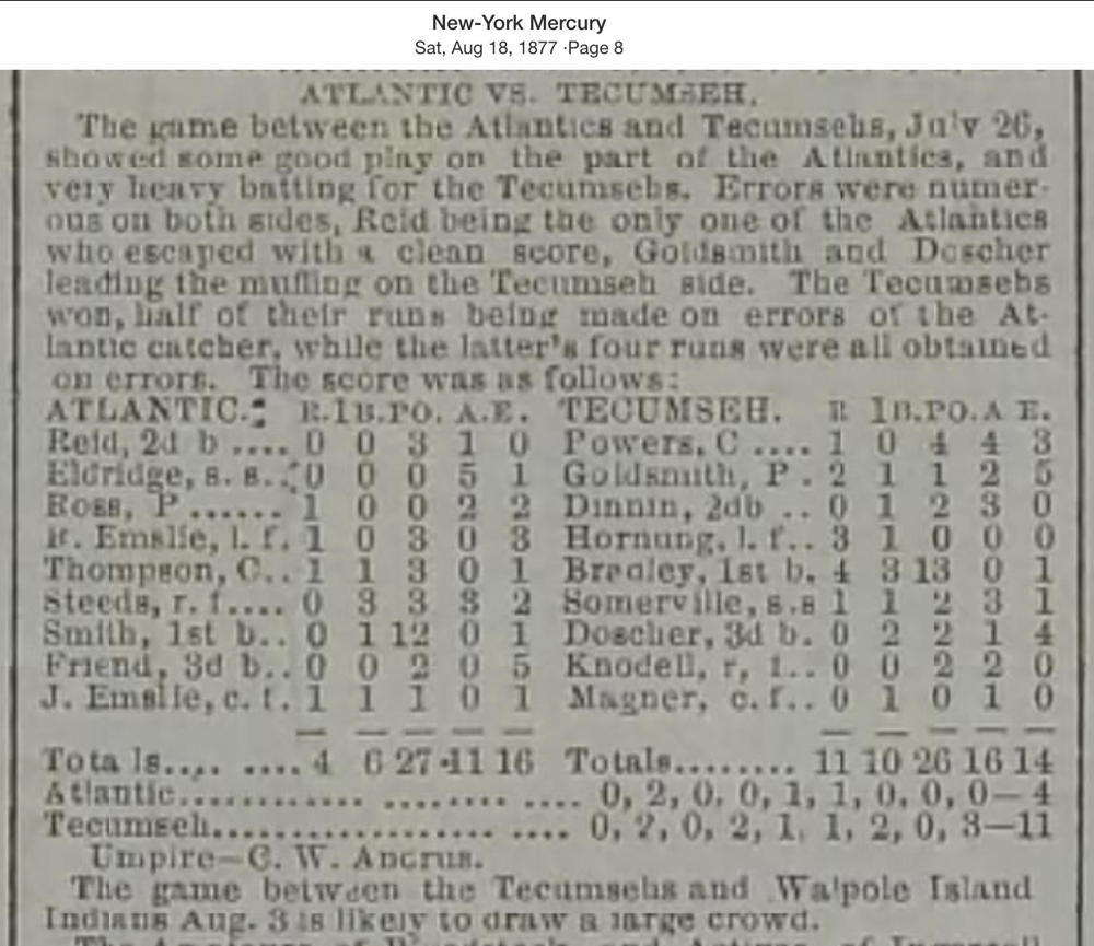 Tecumseh 11, Atlantics 4