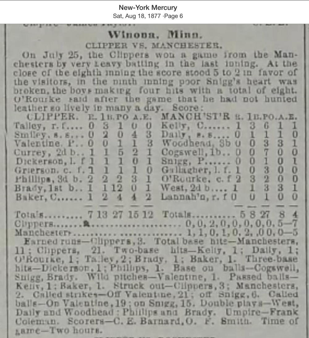 July 25, 1877 at Winona, MNClipper 7, Manchester 5GameID g07251877-02