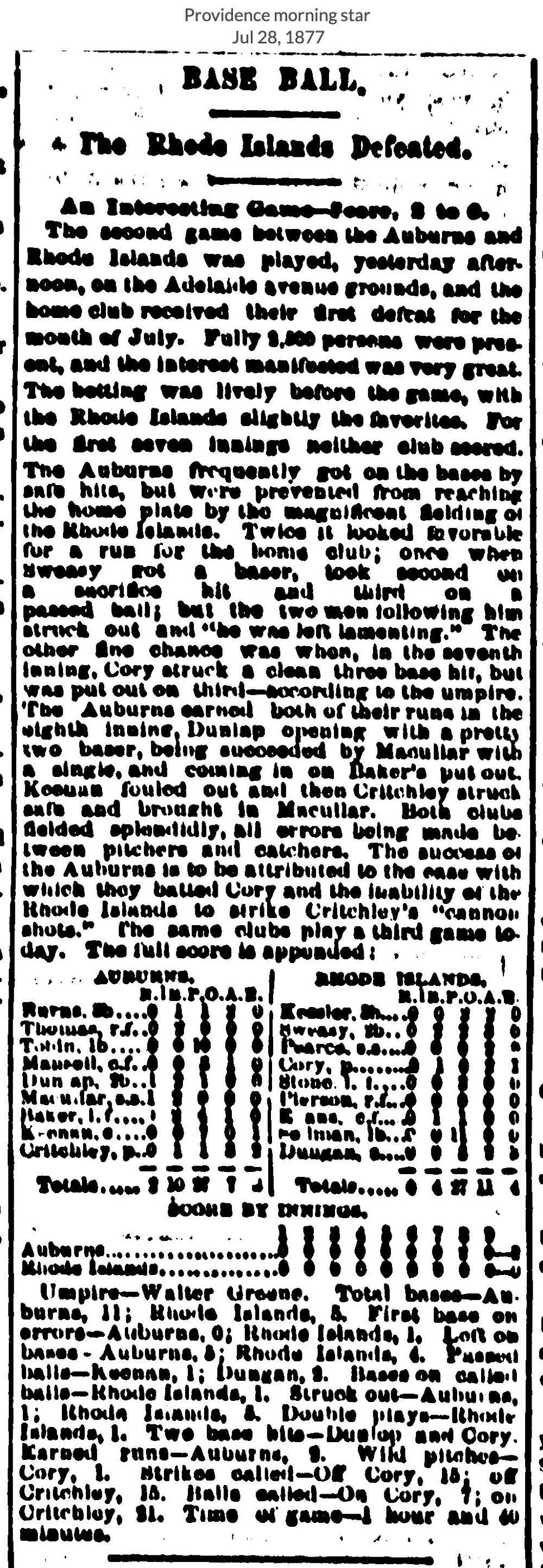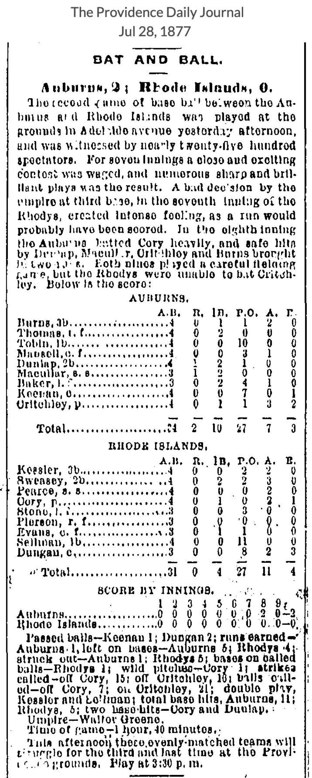 July 27, 1877 at ProvidenceRhode Island 0, Auburn 3GameID g07271877-04