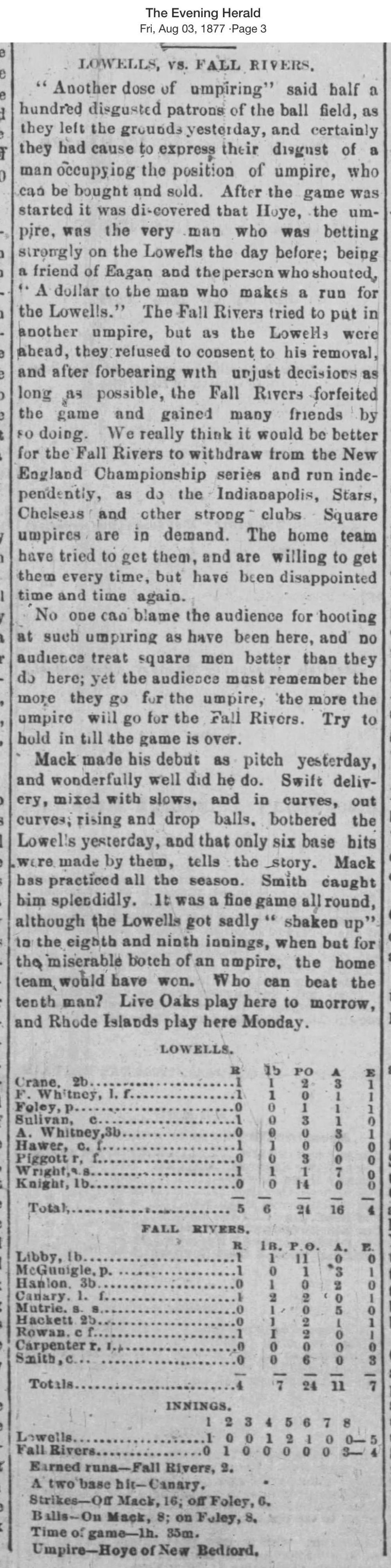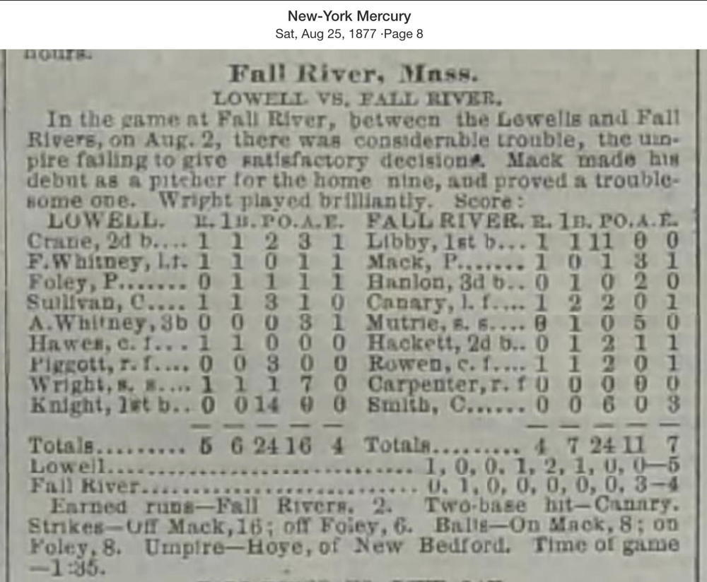 August 2, 1877 at Fall RiverFall River 4, Lowell 5GameID g08021877-02