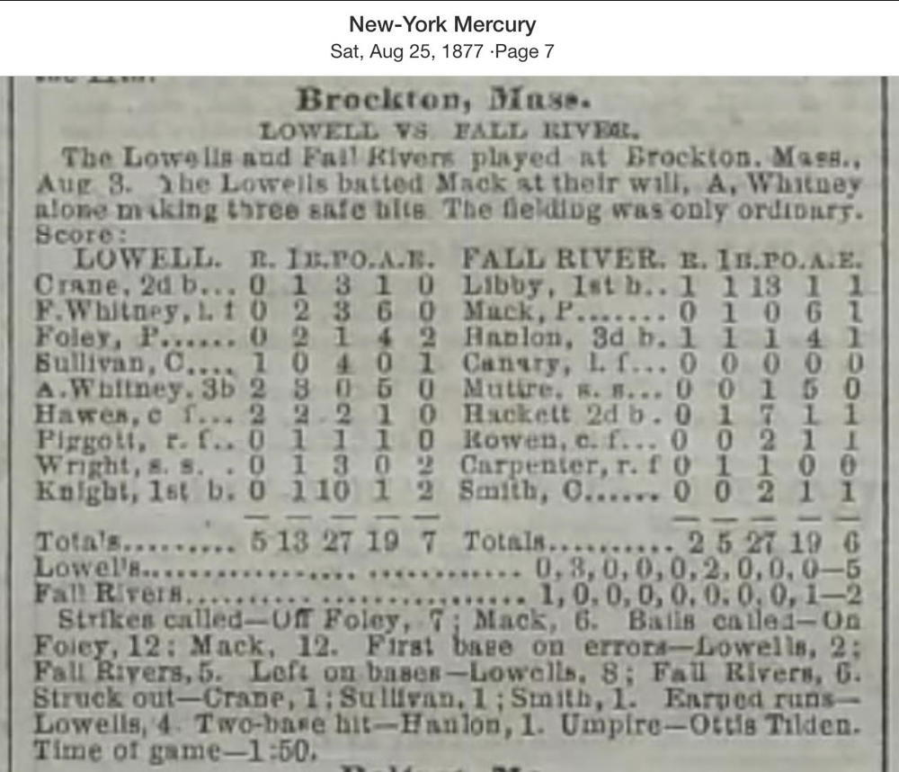 August 3, 1877 at BroctonLowell 5, Fall River 2GameID g08031877-04