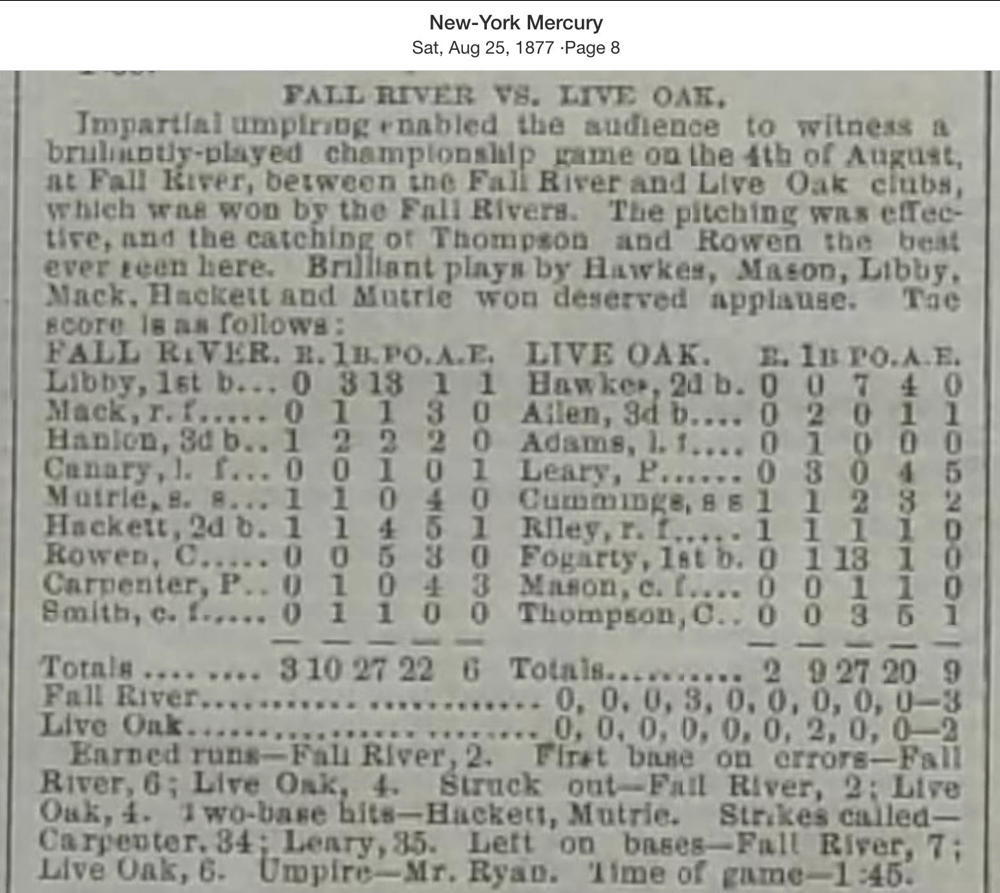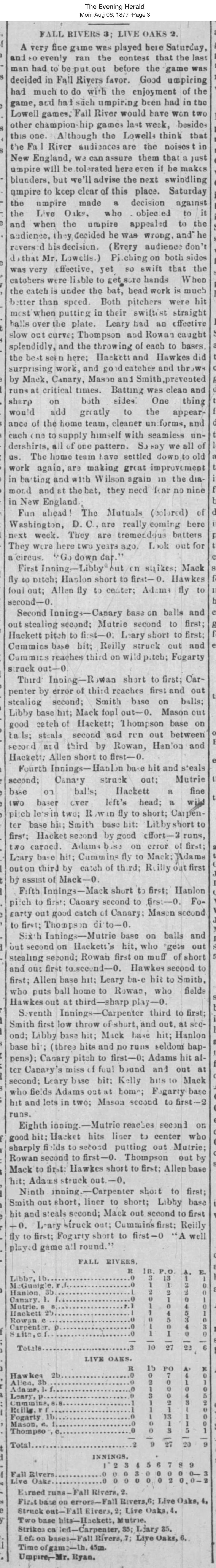 August 4, 1877 at Fall RiverFall River 3, Live Oak 2GameID g08041877-01