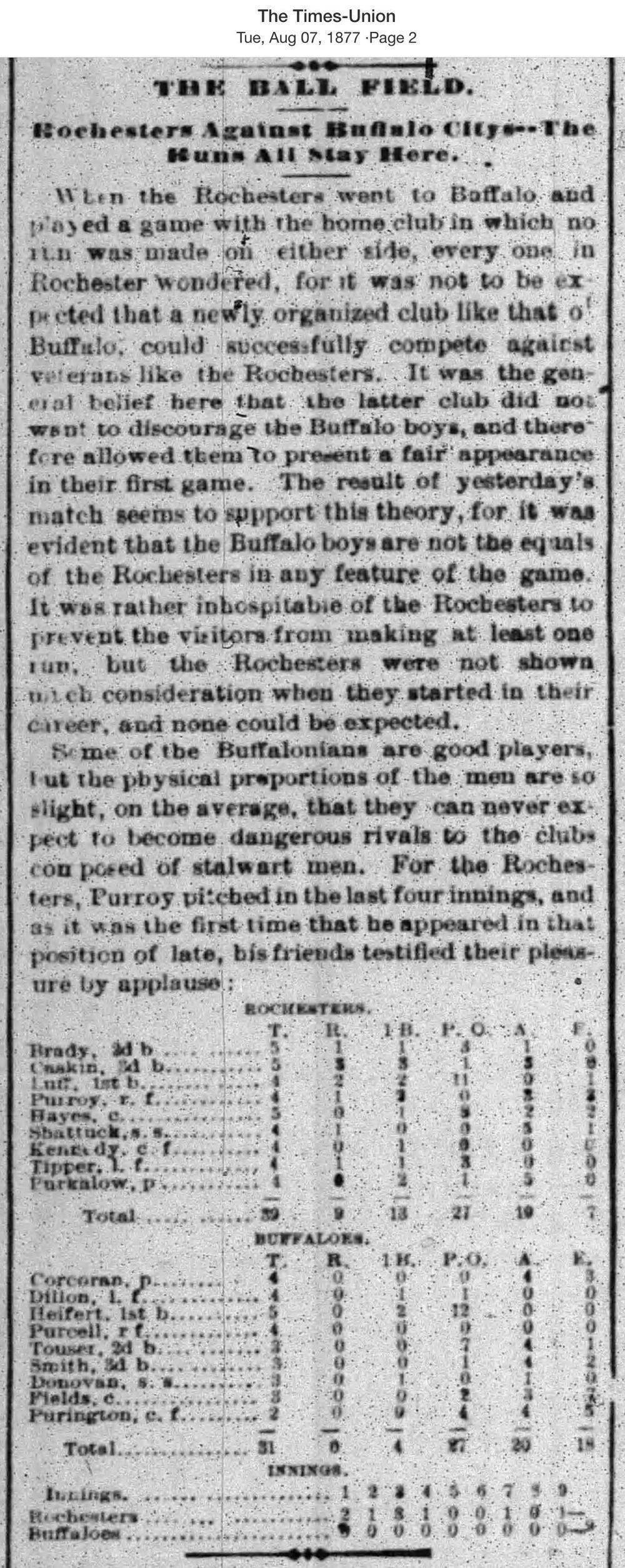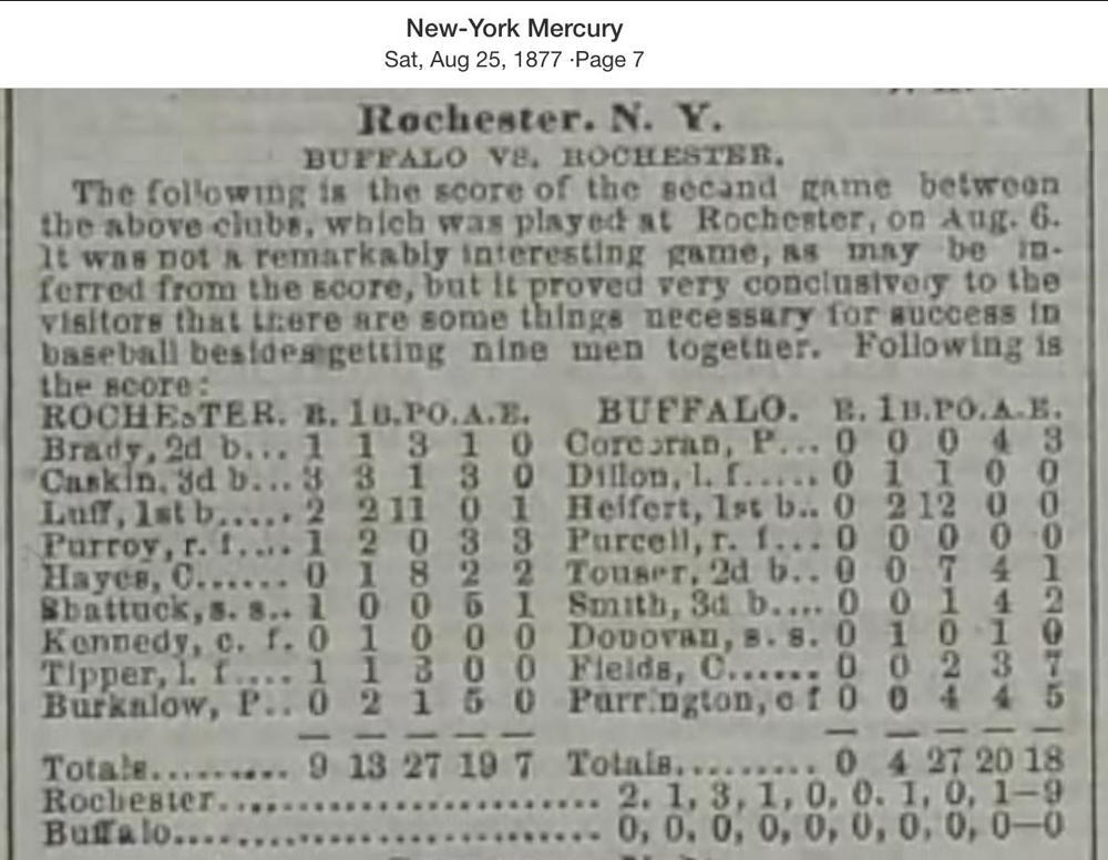August 6, 1877 at RochesterRochester 9, Buffalo 0GameID g08061877-02