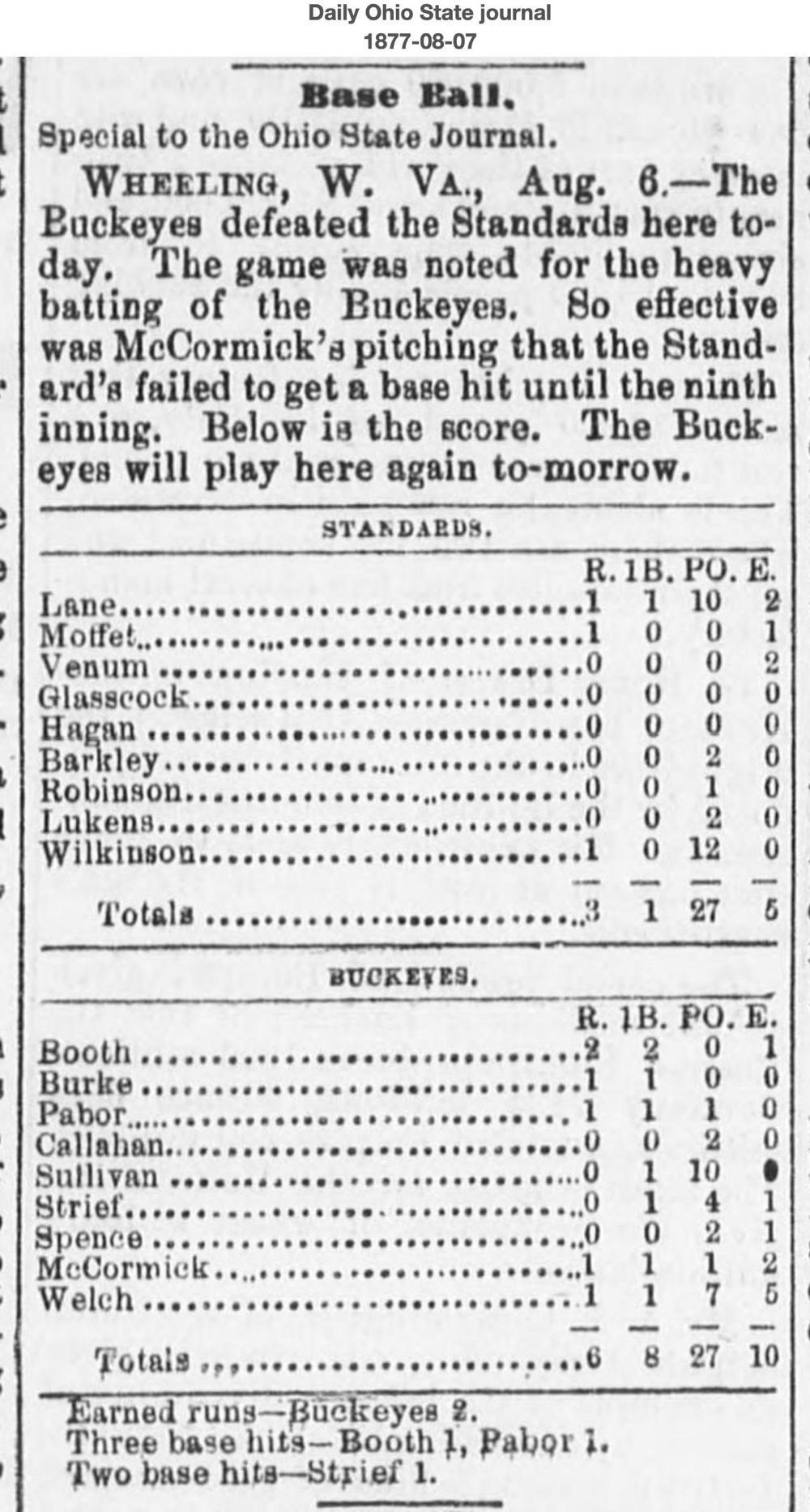 August 6, 1877 at WheelingStandard 3, Buckeyes 6GameID g08061877-03