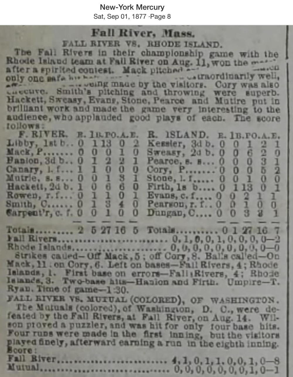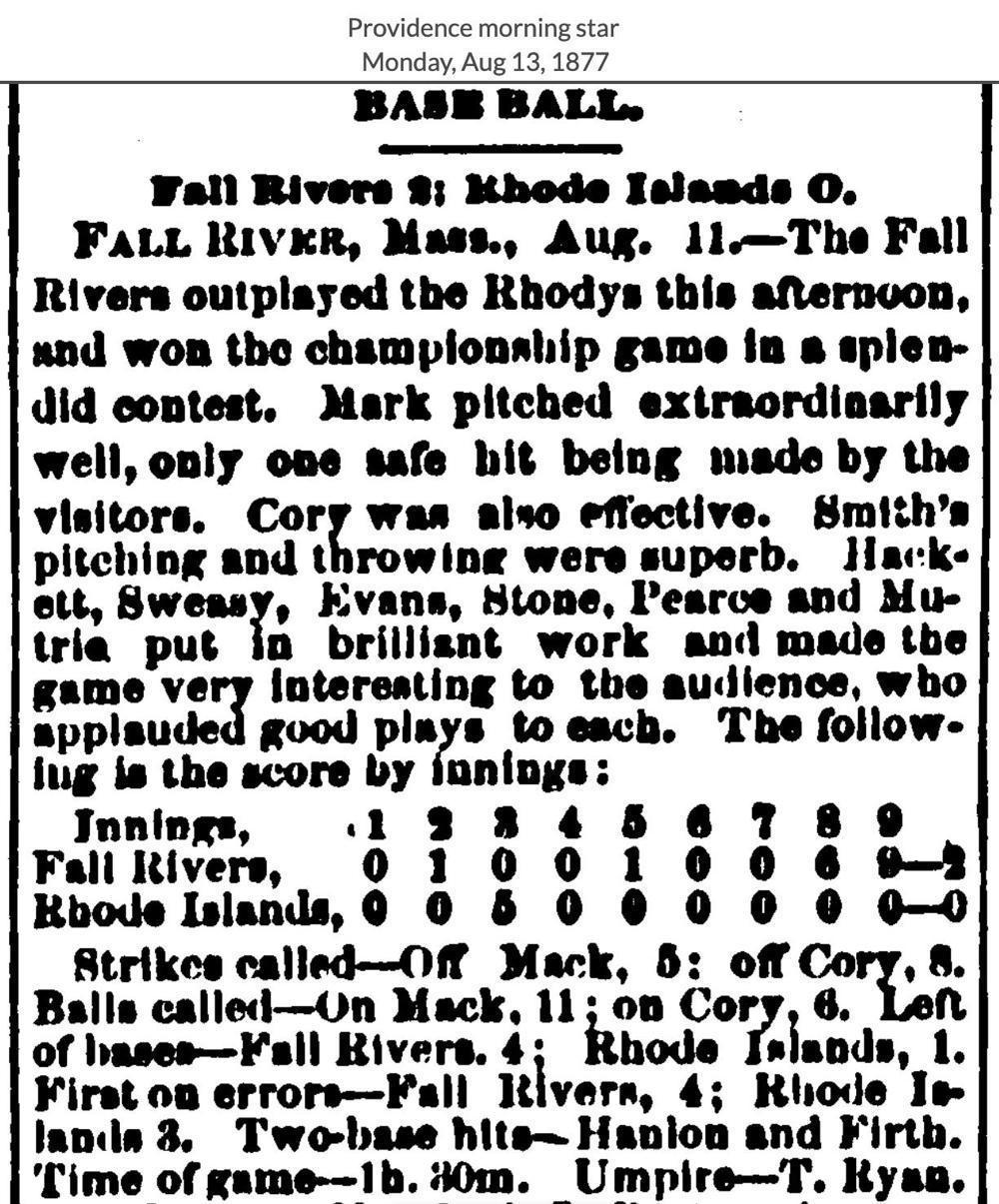 August 11, 1877 at Fall RiverFall River 2, Rhode Island 0GameID g08111877-03