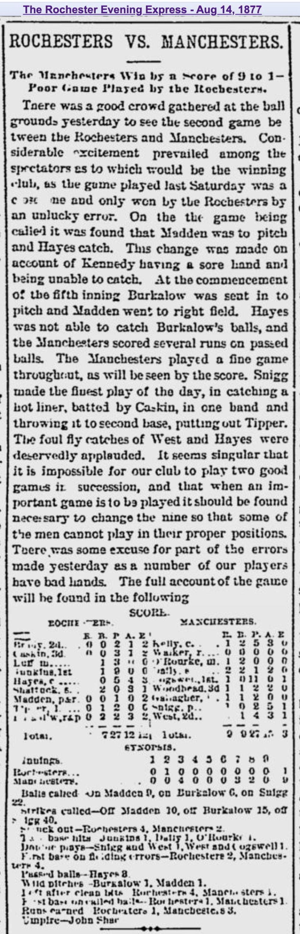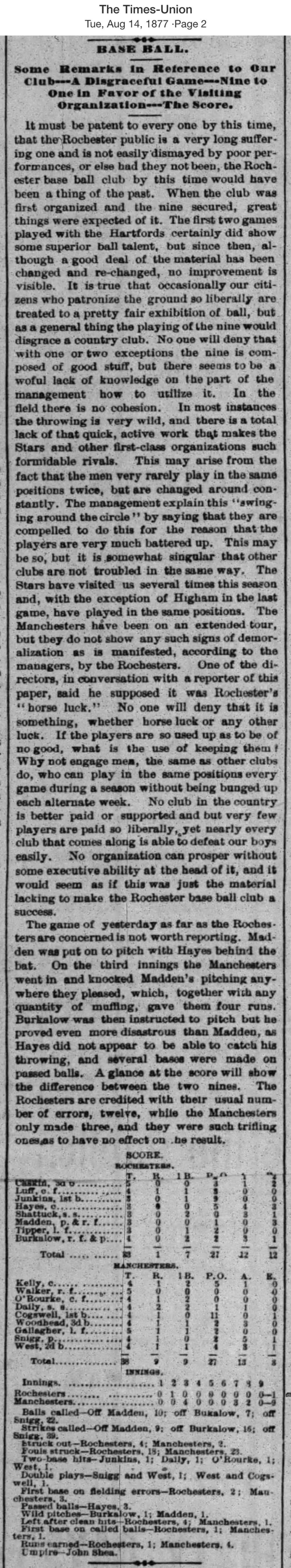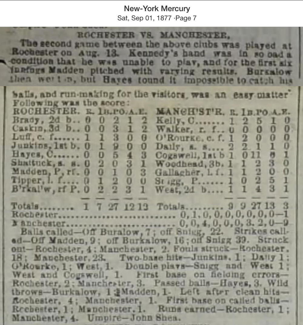 August 13, 1877 at RochesterRochester 1, Manchester 9GameID g08131877-02