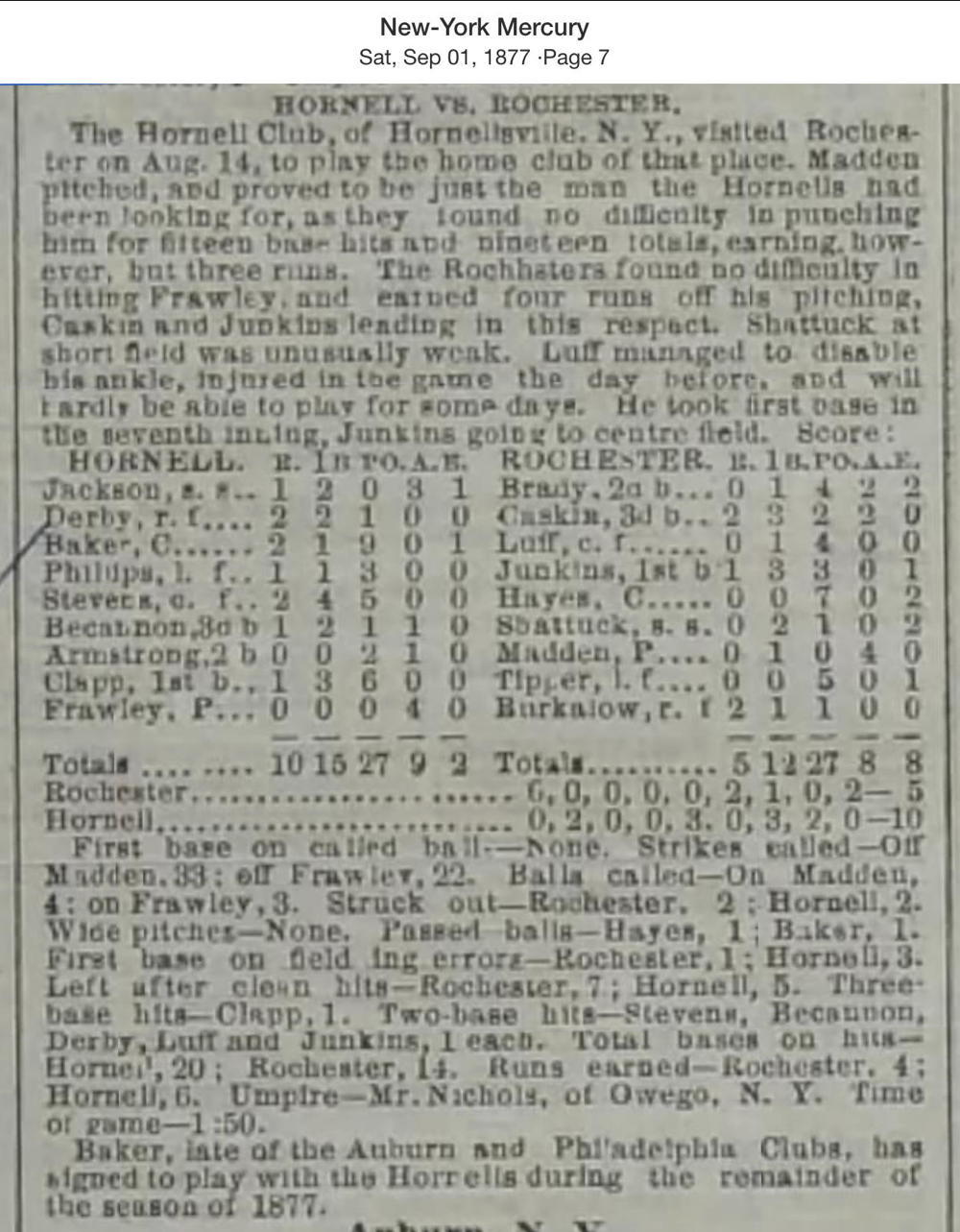 August 14, 1877 at RochesterRochester 5, Hornells 10GameID g08141877-04