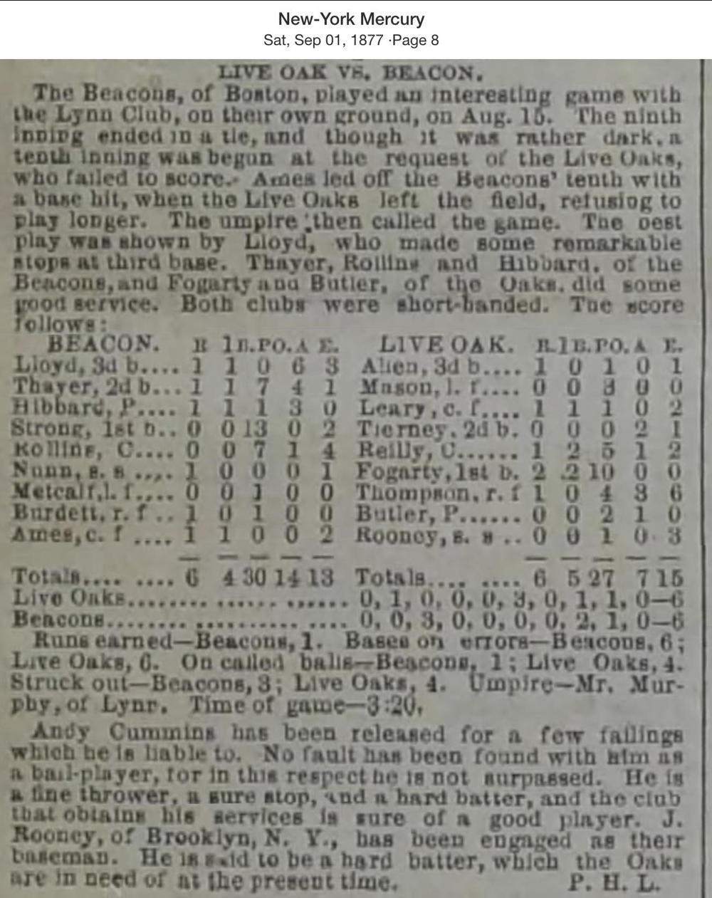 August 15, 1877 at LynnLive Oak 6, Boston Beacons 6GameID g08151877-01