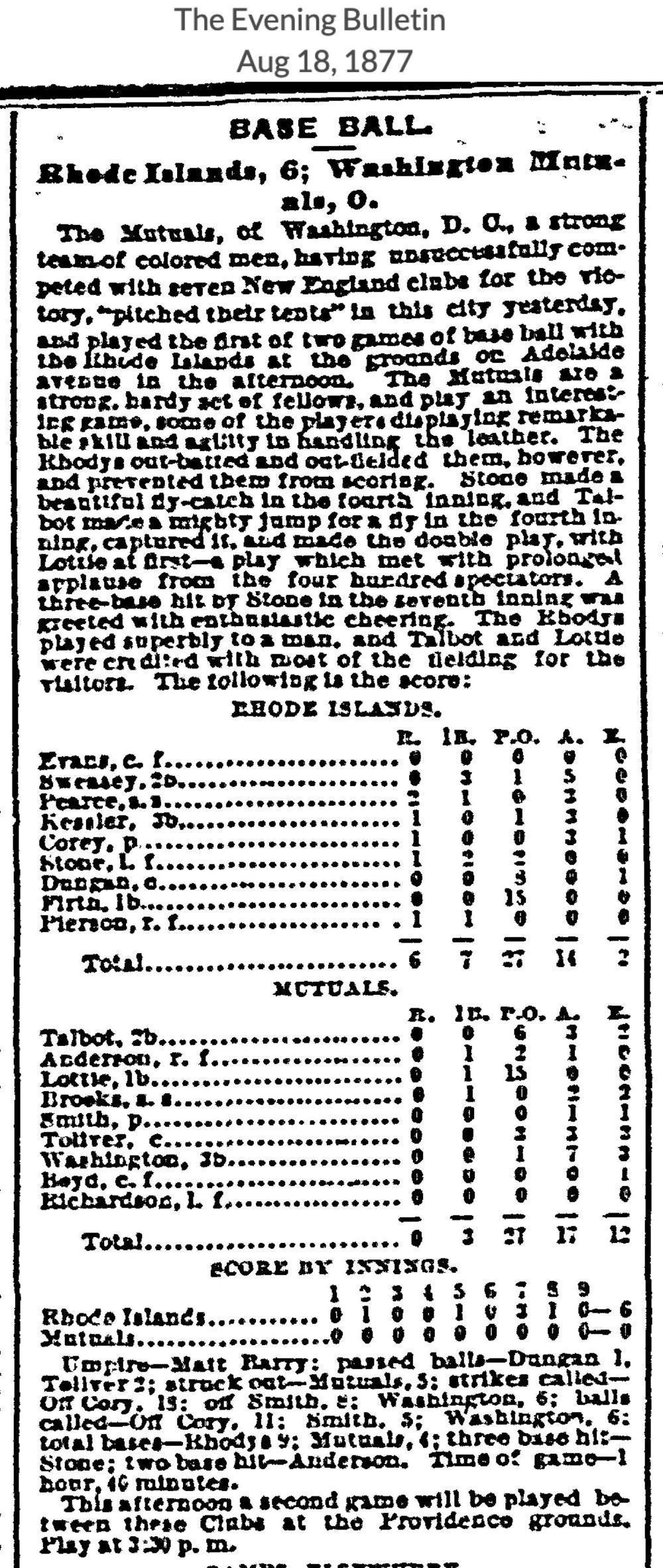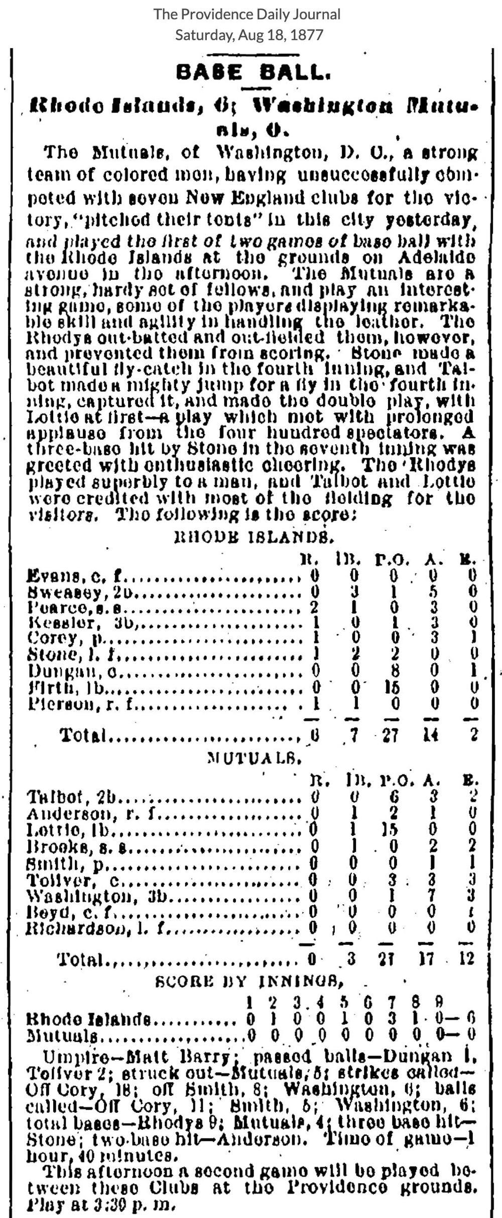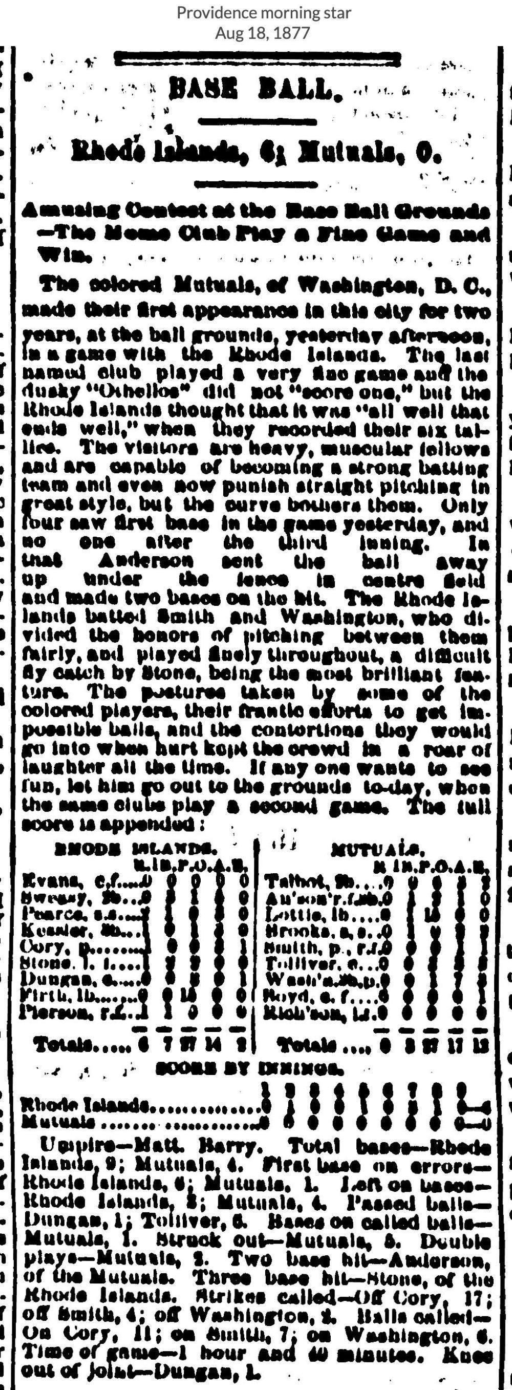 August 17, 1877 at ProvidenceRhode Island 6, Mutuals of Washington DC 0GameID g08171877-05