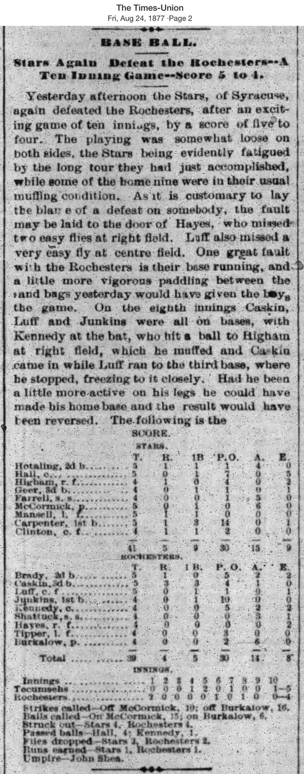 August 23, 1877 at RochesterRochester 4, Star 5GameID g08231877-05