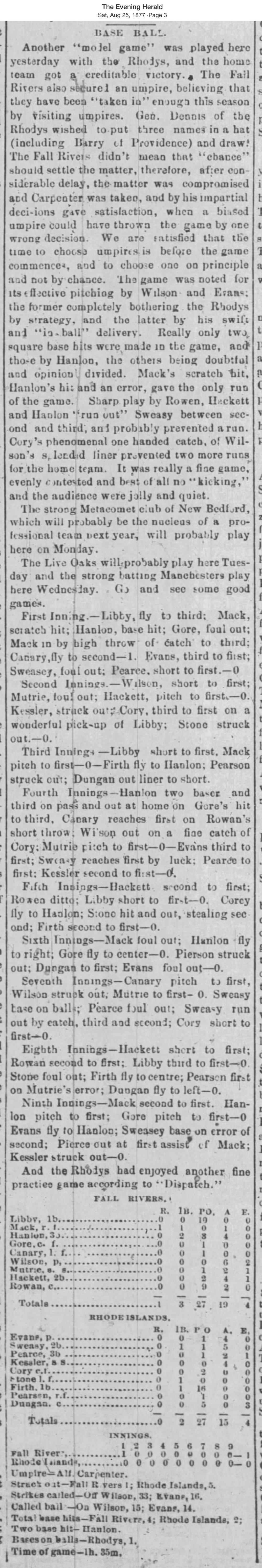 August 24, 1877 at Fall River