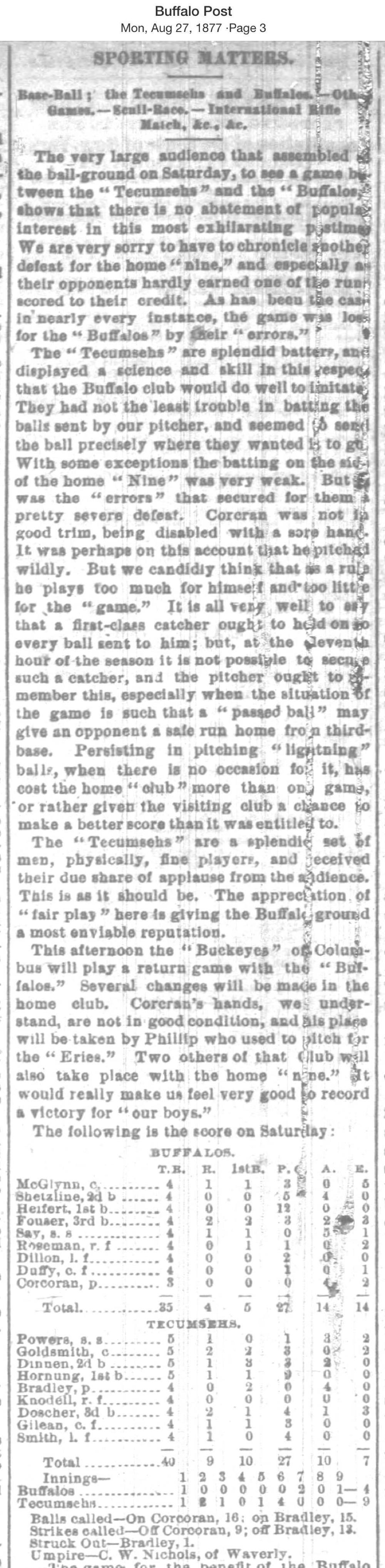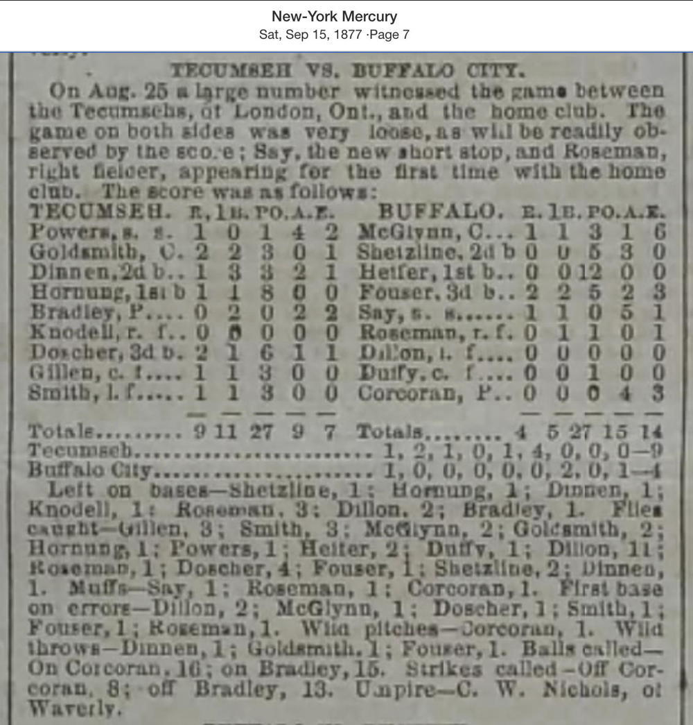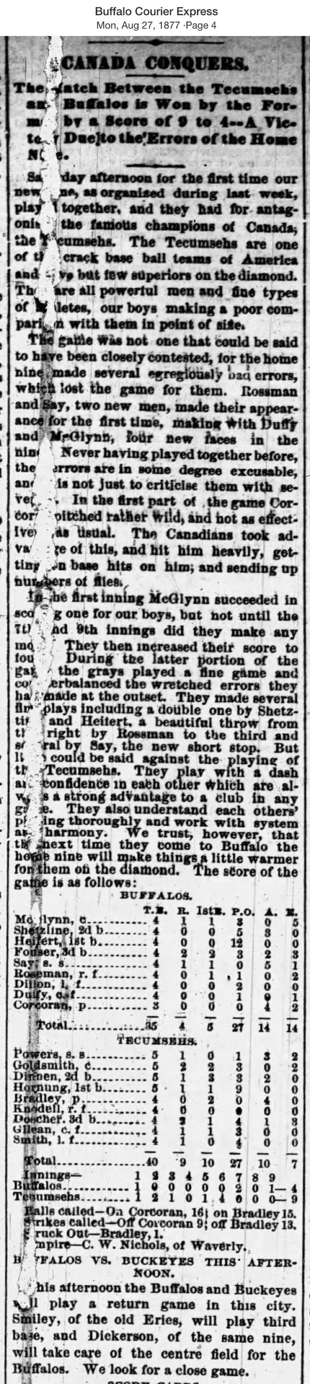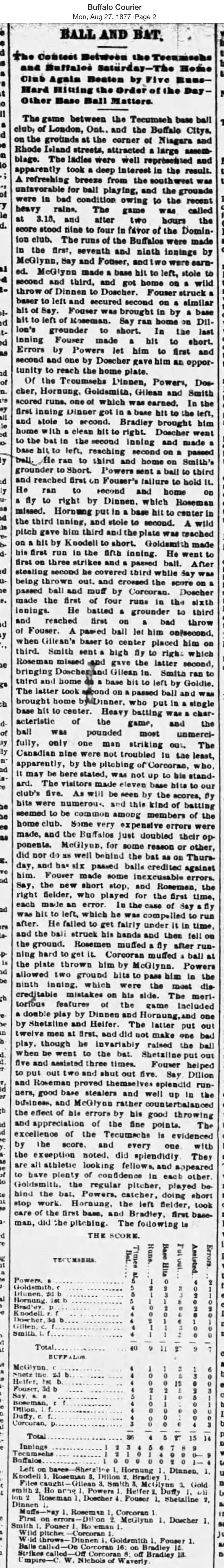 August 25, 1877 at BuffaloBuffalo 4, Tecumseh 9GameID g08251877-01