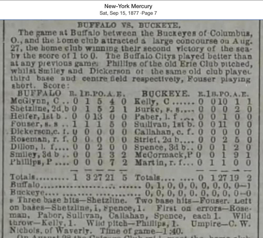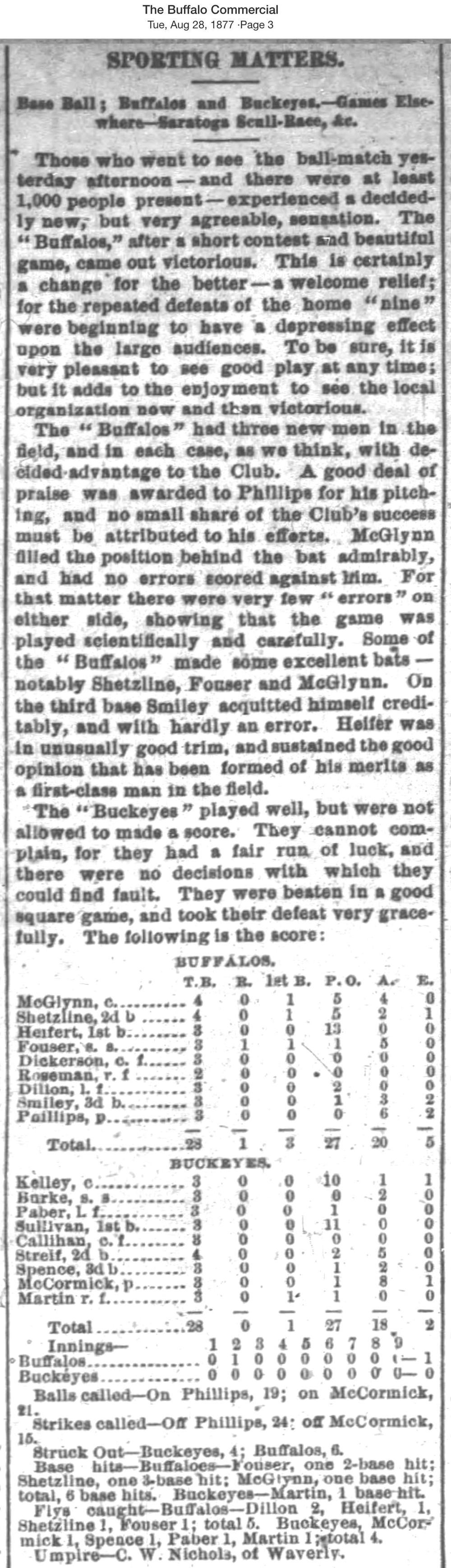 August 27, 1877 at BuffaloBuffalo 1, Buckeyes 0GameID g08271877-01