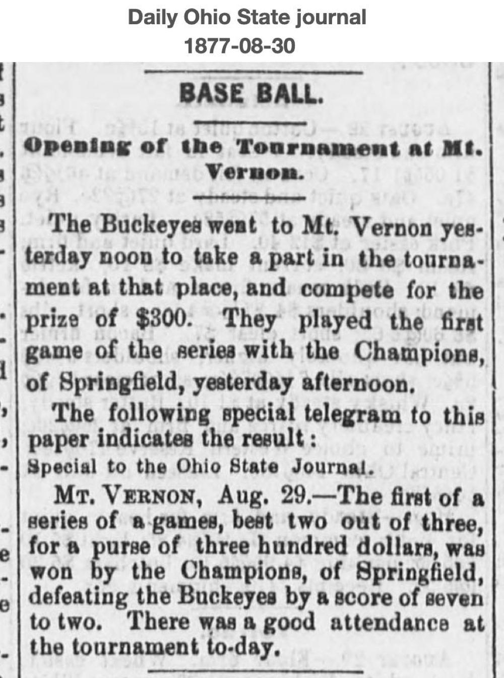 August 29, 1877 at Mt. Vernon Tournament?