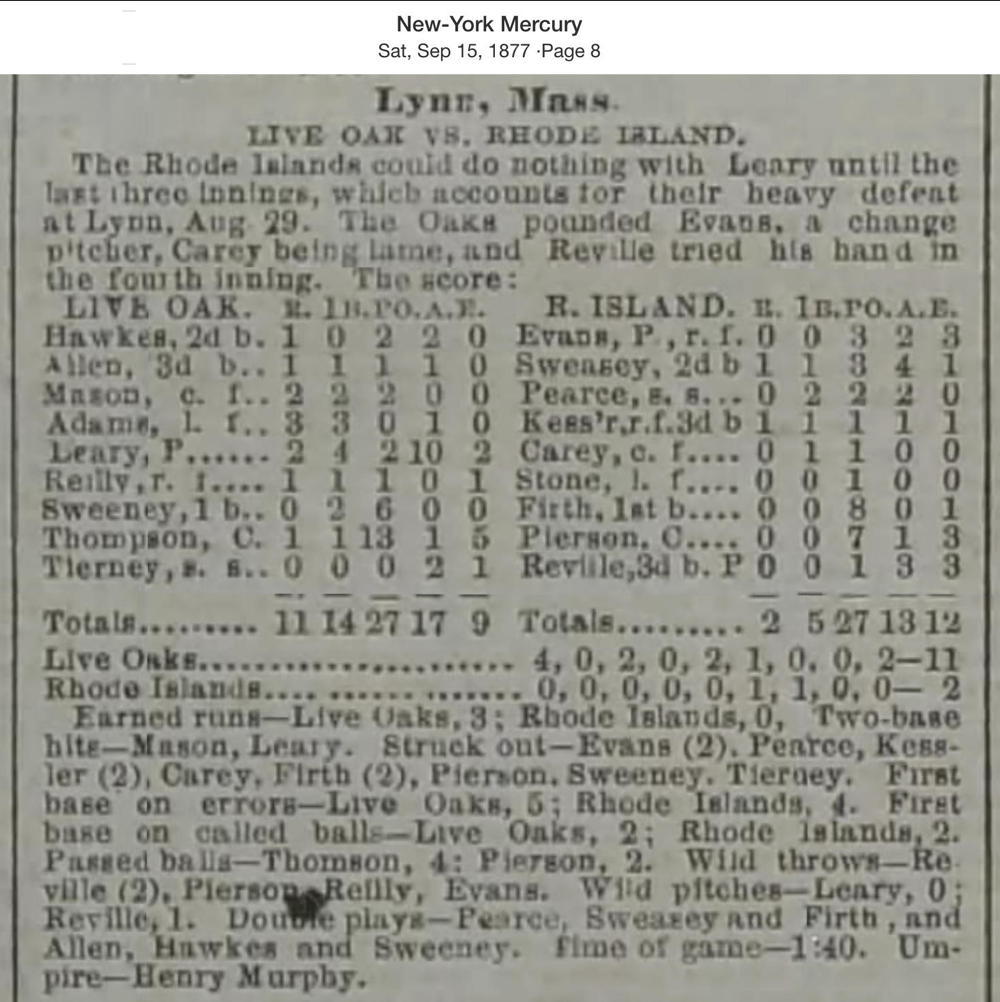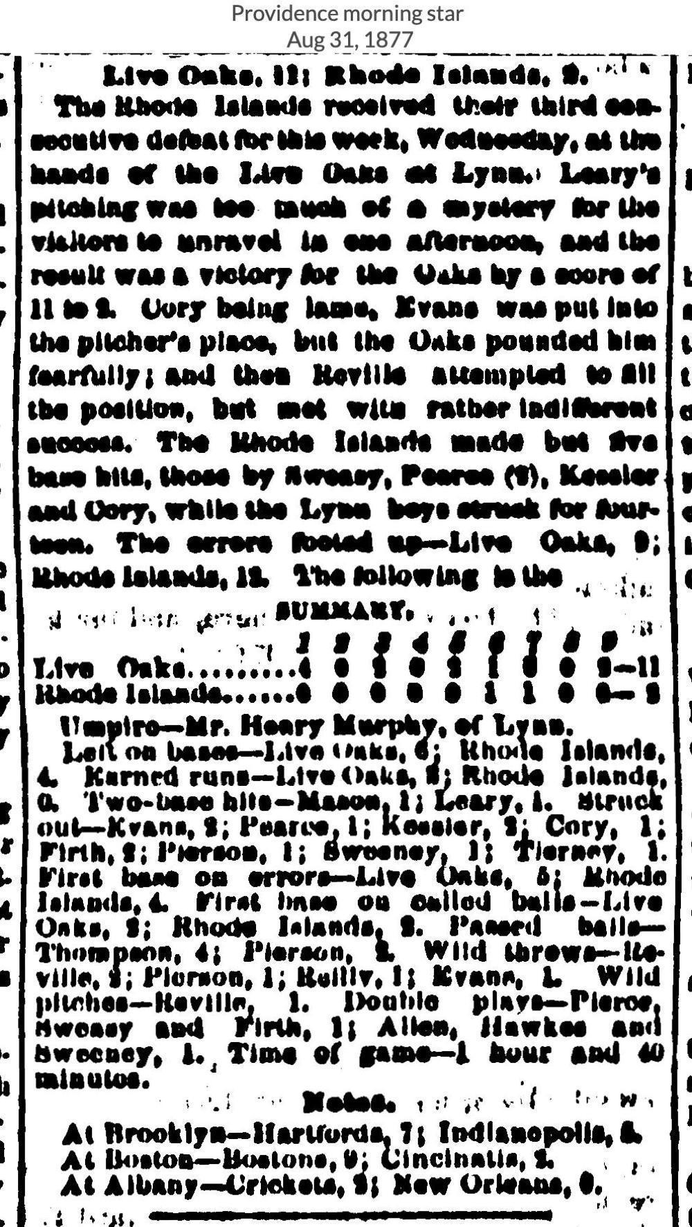 August 29, 1877 at LynnLive Oak 11, Rhode Island 2GameID g08291877-03
