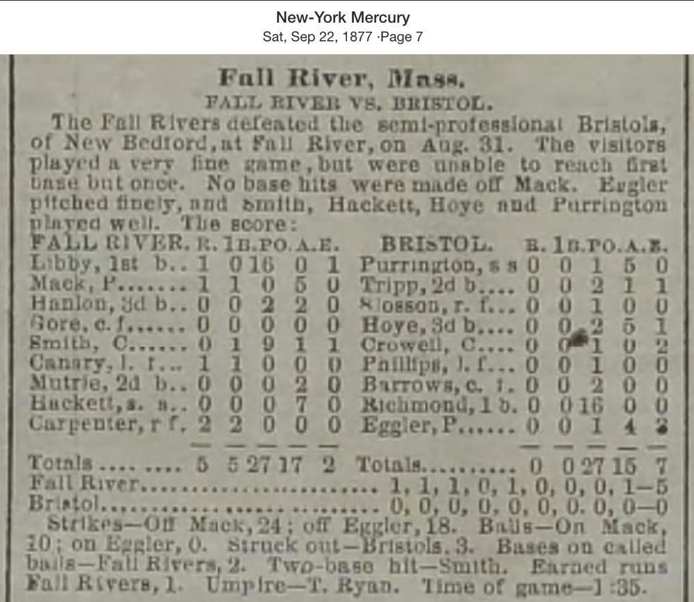 August 31, 1877 at Fall RiverFall River 5, Bristol 0GameID g08311877-03