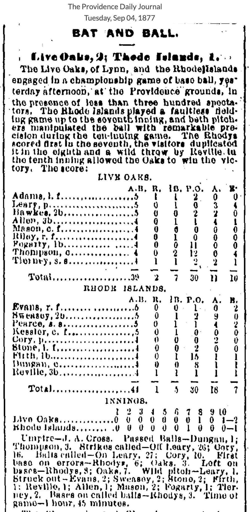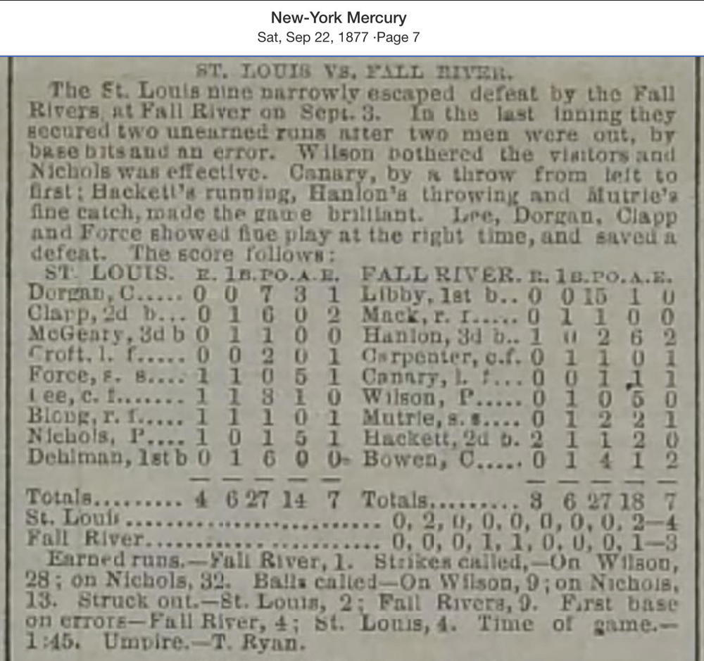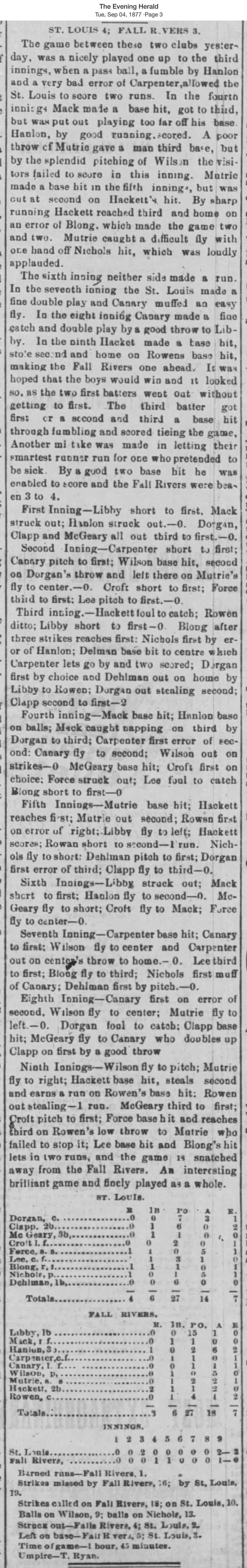 September 3, 1877 at Fall RiverFall River 3, St. Louis 4GameID g09031877-03