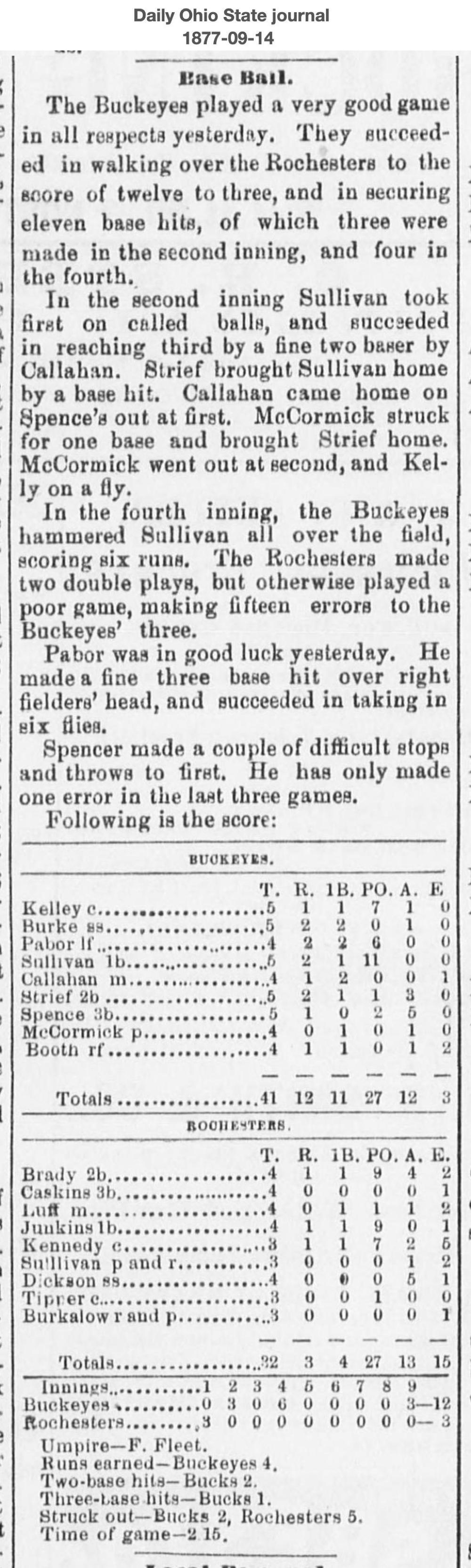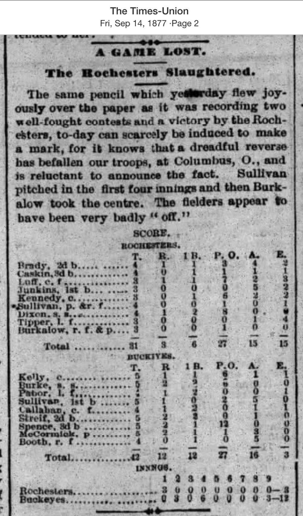 September 13, 1877 at ColumbusBuckeyes 12, Rochester 3GameID g09131877-02