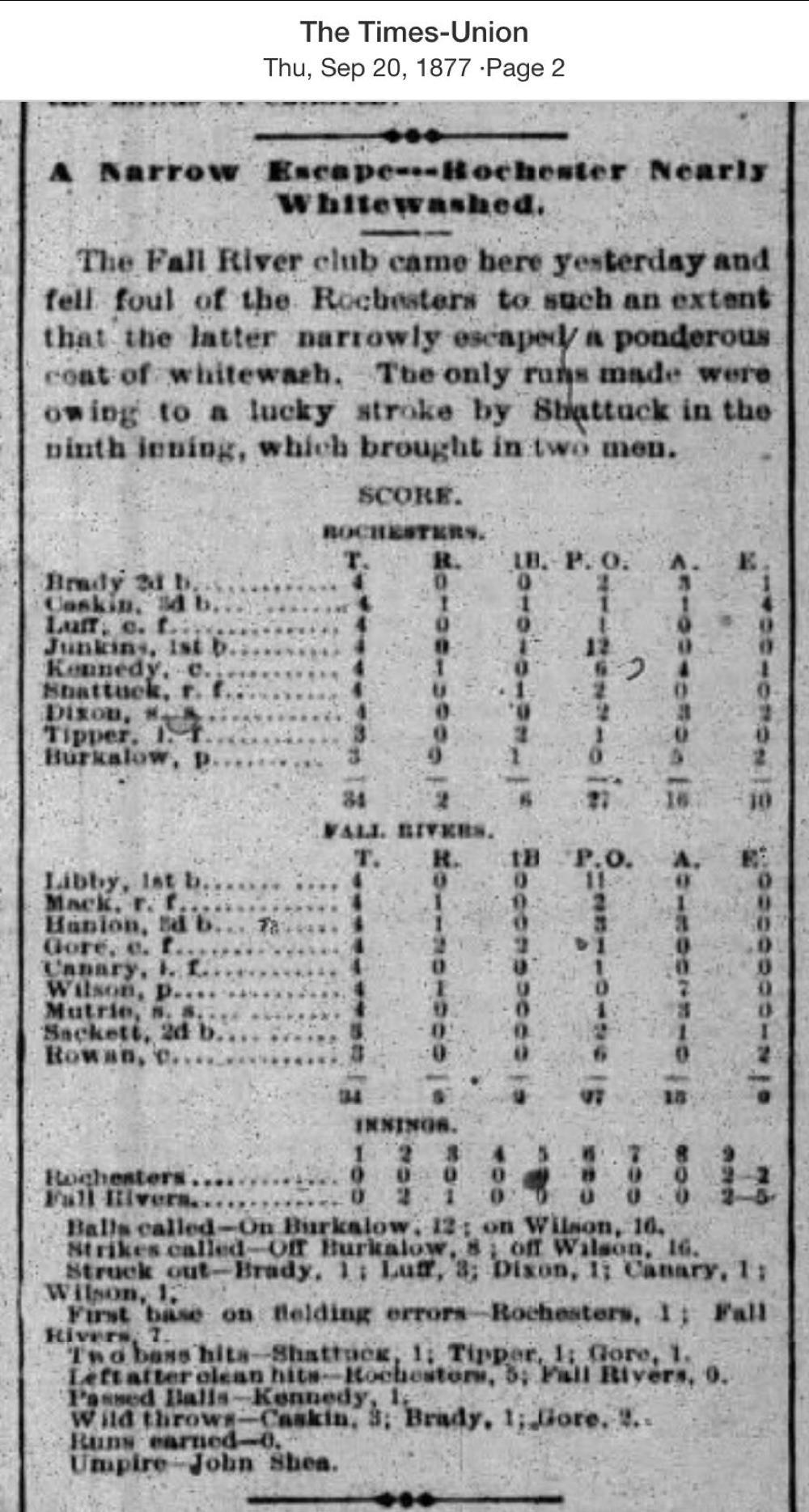 September 19, 1877 at RochesterRochester 2, Fall River 5GameID g09191877-03