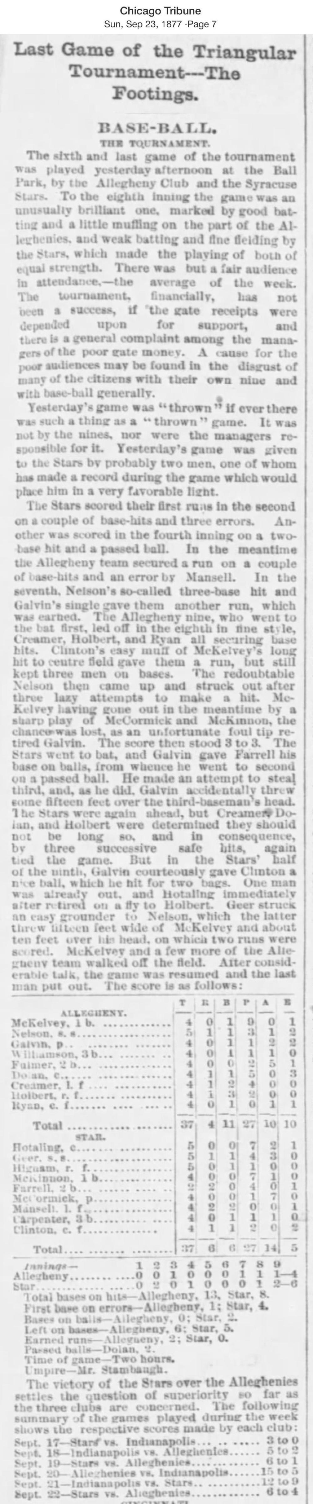 September 22, 1877 at ChicagoSyracuse Stars 6, Allegheny 4GameID g09221877-03