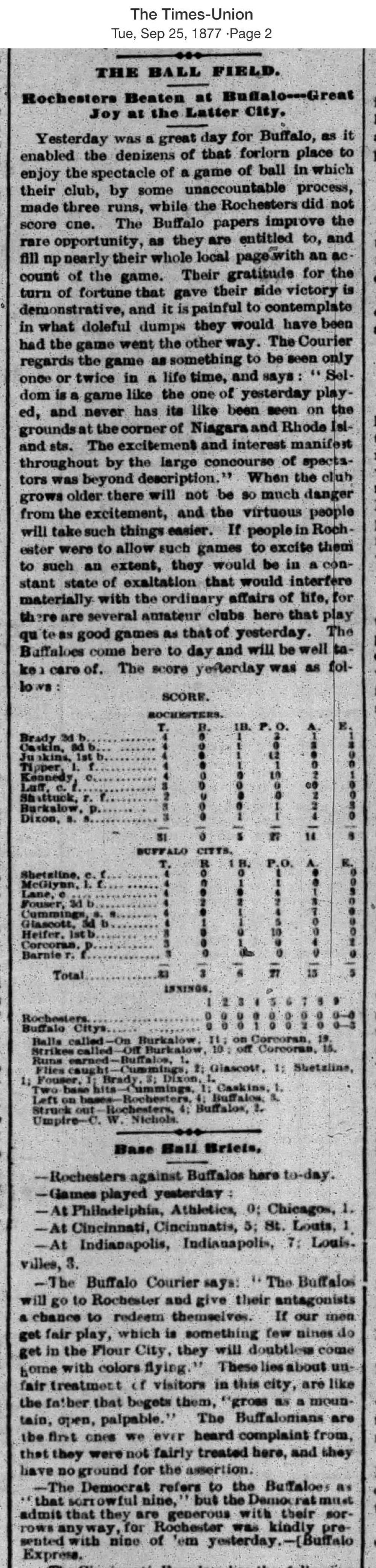 September 24, 1877 at BuffaloBuffalo 3, Rochester 0GameID g09241877-02