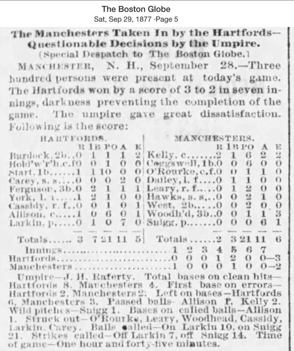 September 28, 1877 at ManchesterManchester 2, Hartford 3GameID g09281877-02