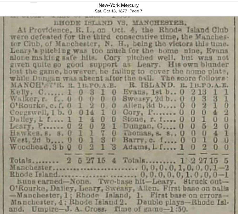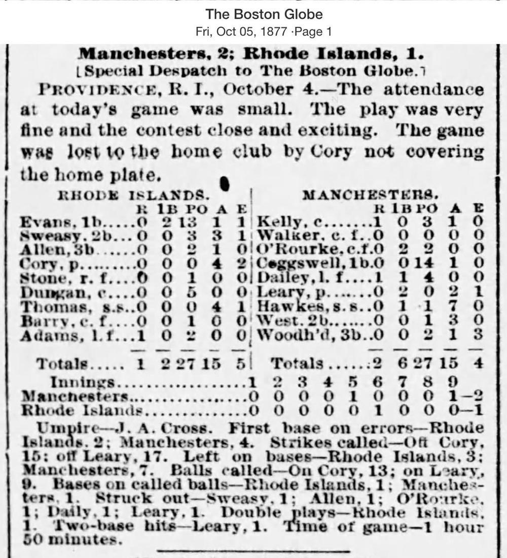 October 4, 1877 at ProvidenceRhode Island 1, Manchester 2GameID g10041877-02