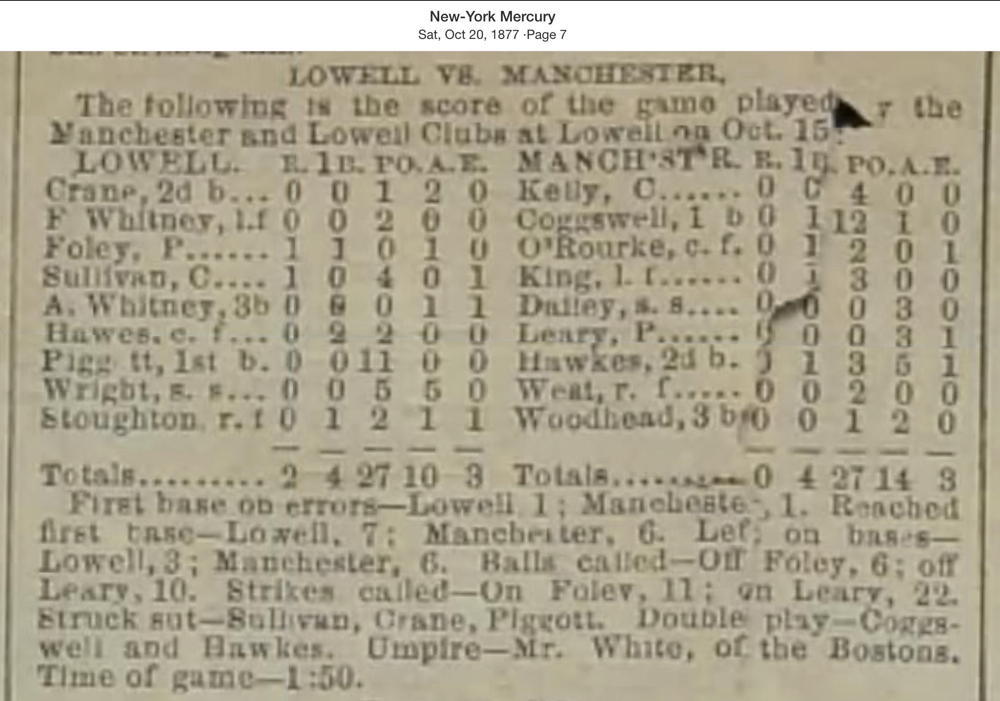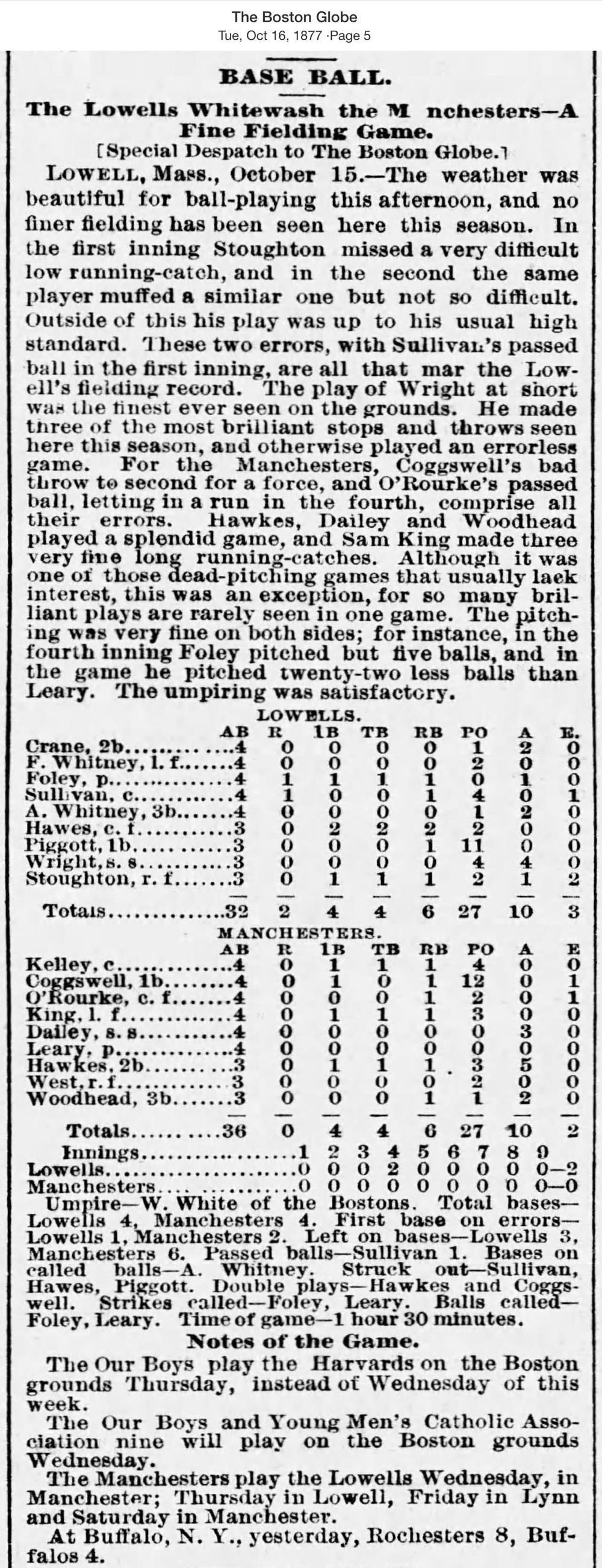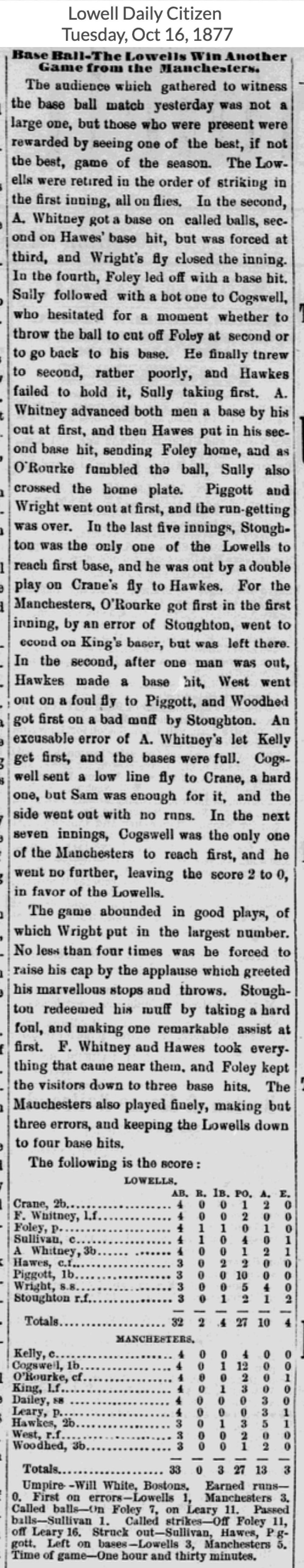 October 15, 1877 at LowellLowell 2, Manchester 0GameID g10151877-02