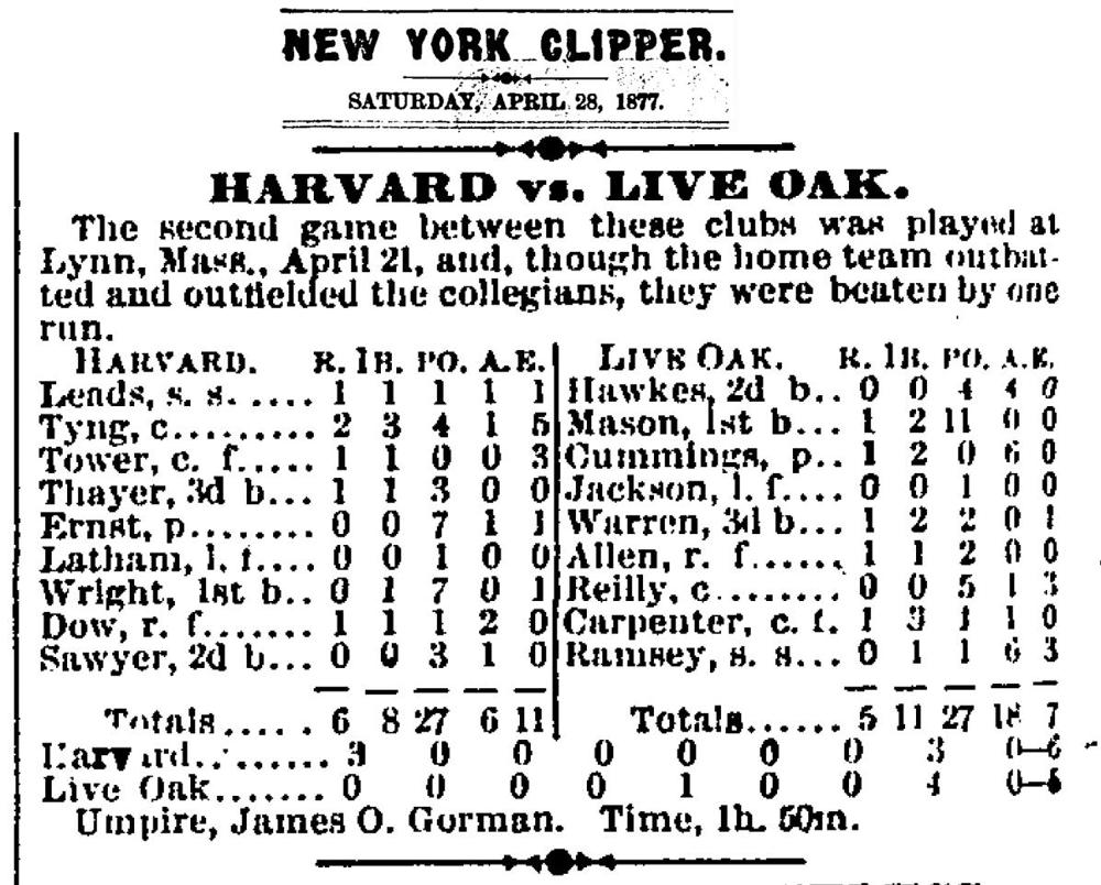 April 21, 1877 at IndLive Oak 5, Harvard 6GameID g04211877-01