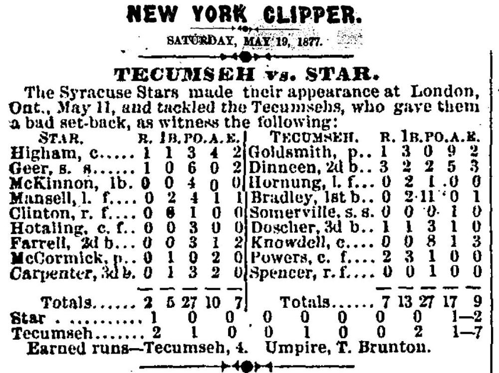 Tecumseh 7, Syracuse Stars 2